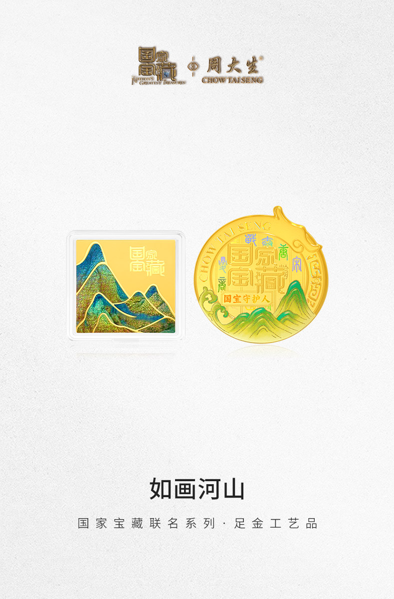 周大生国家宝藏联名足金工艺品江山如画黄金手机贴生日礼物男生520送女朋友礼物送男友礼物推荐纪念日情人节