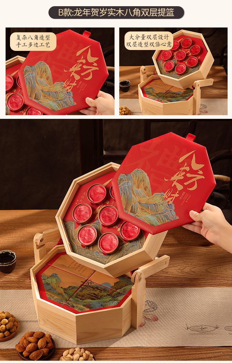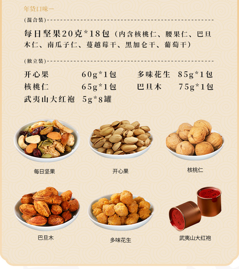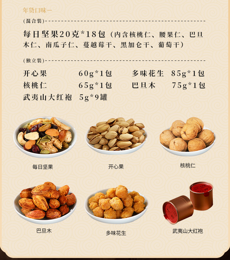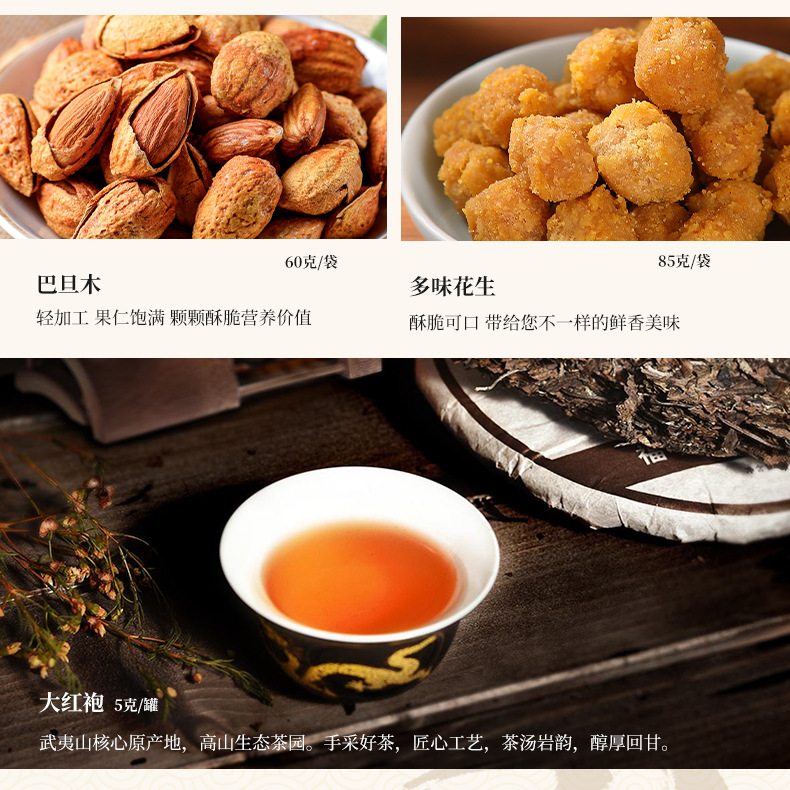 【觅食严选!南三府蛇年贺岁/八方来财双层提篮】每日坚果(内含核桃仁、腰果仁、巴旦木仁、南瓜子仁、蔓越莓干、黑加仑干、葡萄干)开心果 核桃仁 武夷山大红袍 多味花生 -52