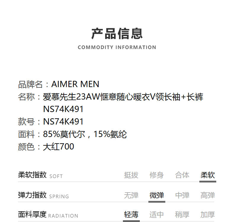 【海信嘉年华】爱慕先生男士秋衣秋裤红色套装NS74K491