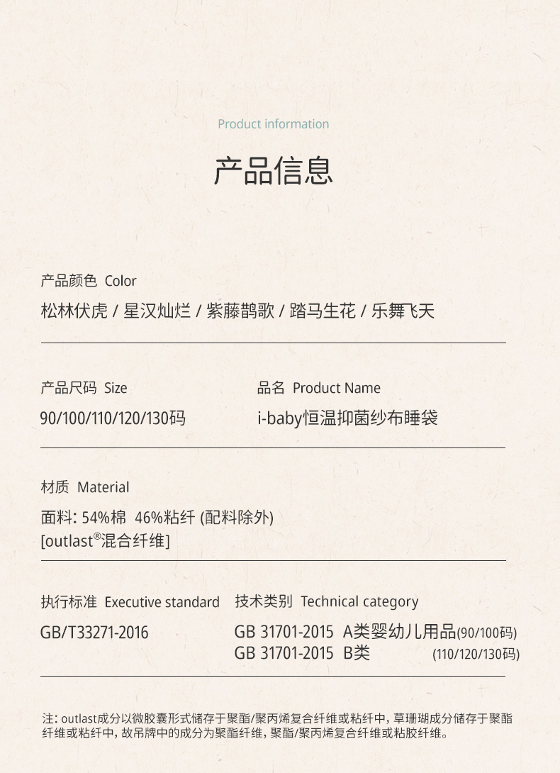 QHXJibaby×outlast太空科技恒温双层纱春夏纱布薄款分腿睡袋【若没货 安排退款】【组合商品 不支持单退】