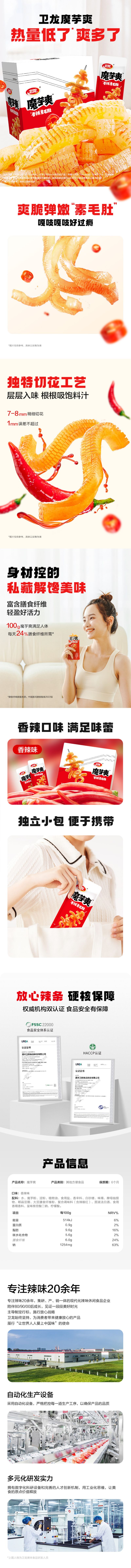卫龙魔芋爽辣条香辣味素毛肚 300g 休闲小零食便携20小包