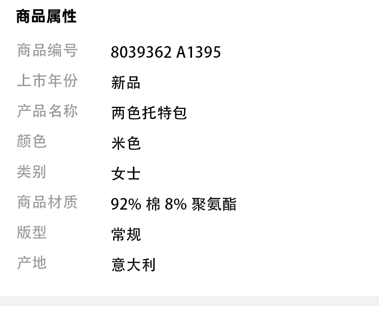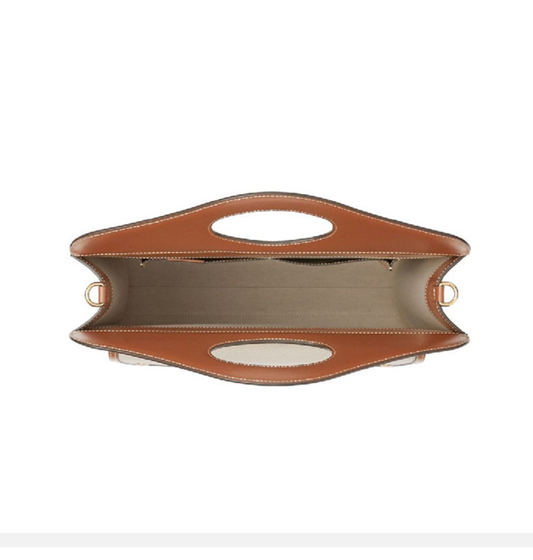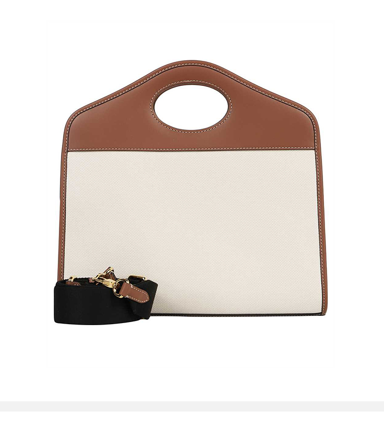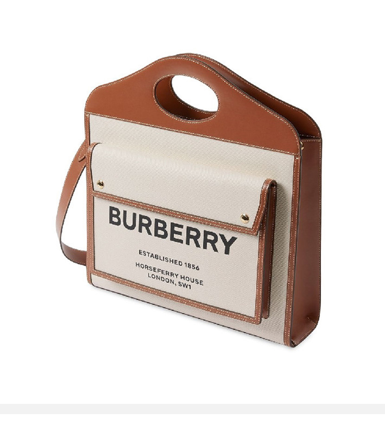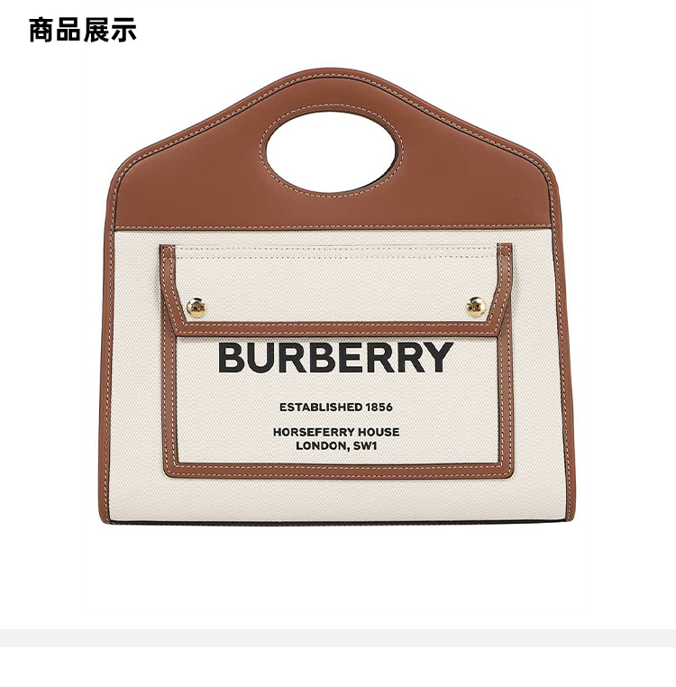 BURBERRY 博柏利 女士中号双色帆布拼皮革口袋提挎托特包 米色 8039362 A1395