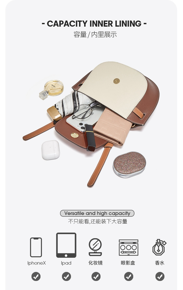 Safiya/索菲娅牛皮2022新款马鞍包单肩包包女式斜挎包女包SF954011Y