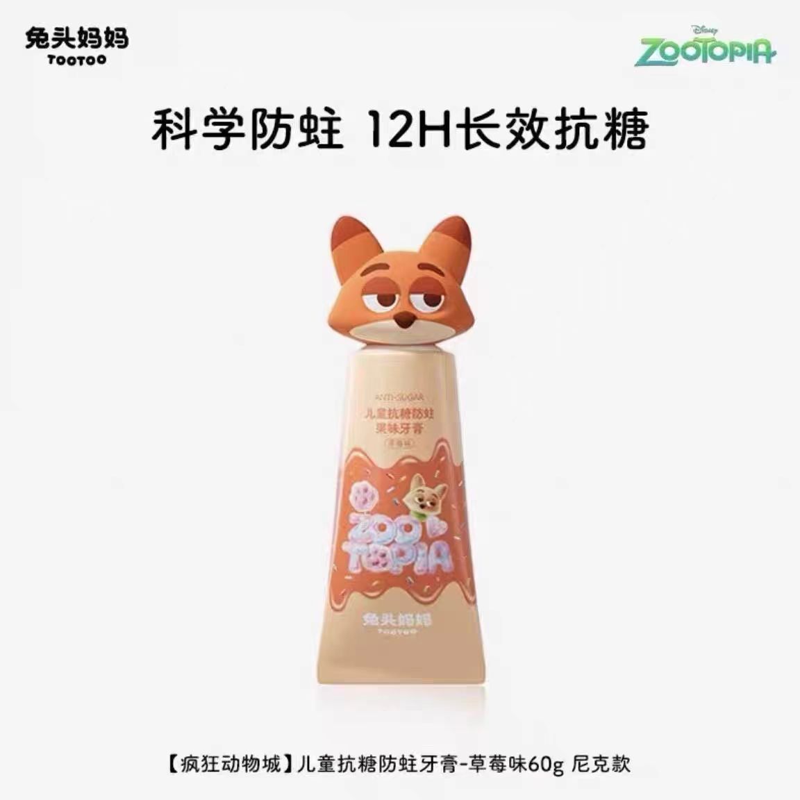 兔头妈妈儿童抗糖防蛀果味牙膏-尼克、朱迪、豹警官款60gTTMM-421041/TTMM-421058/TTMM-421065
