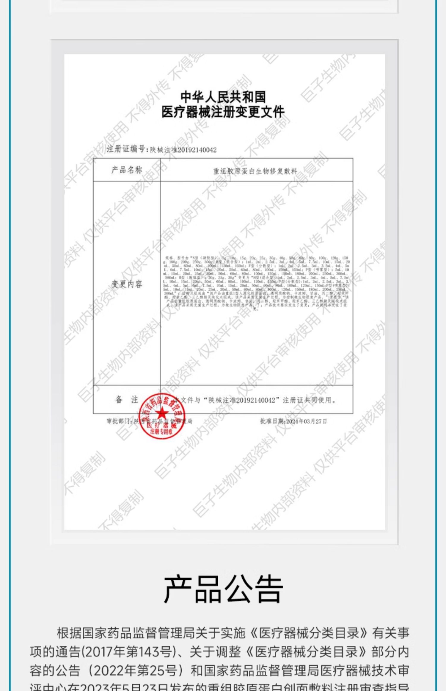 【可复美重组胶原蛋白生物修复敷料】P型50ml