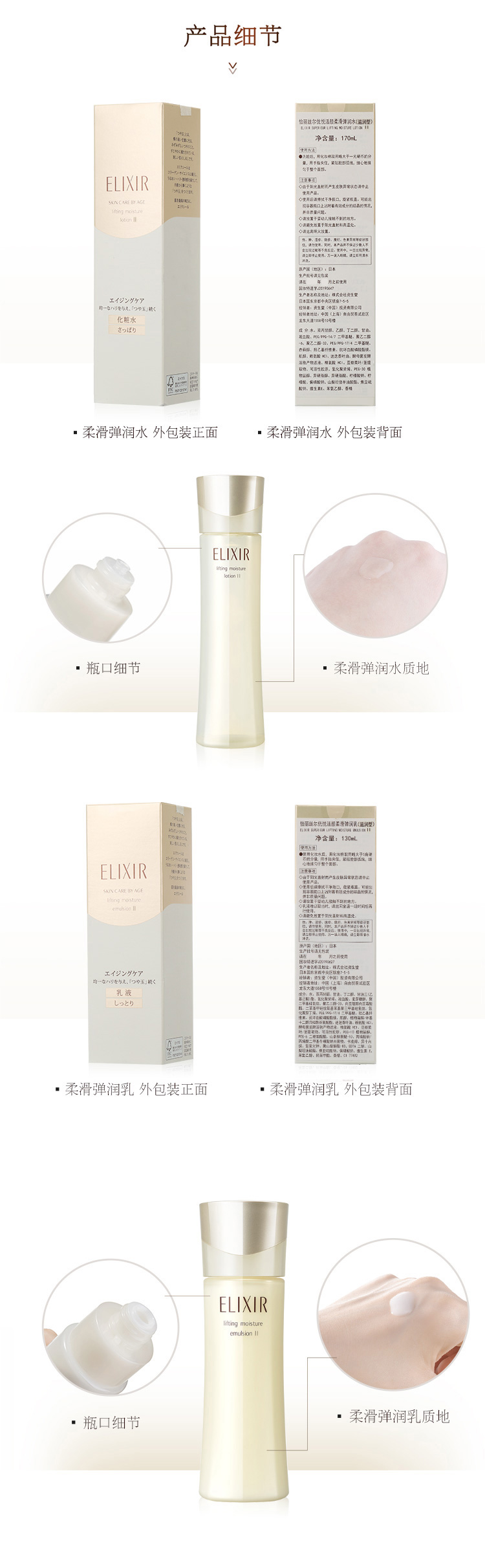 怡丽丝尔优悦活颜柔滑弹润水乳(水170ml+乳130ml) 滋润保湿