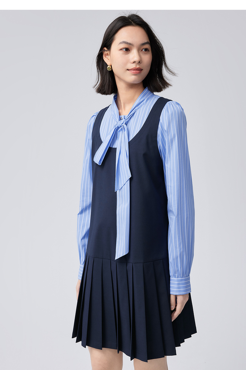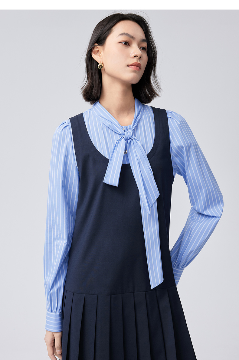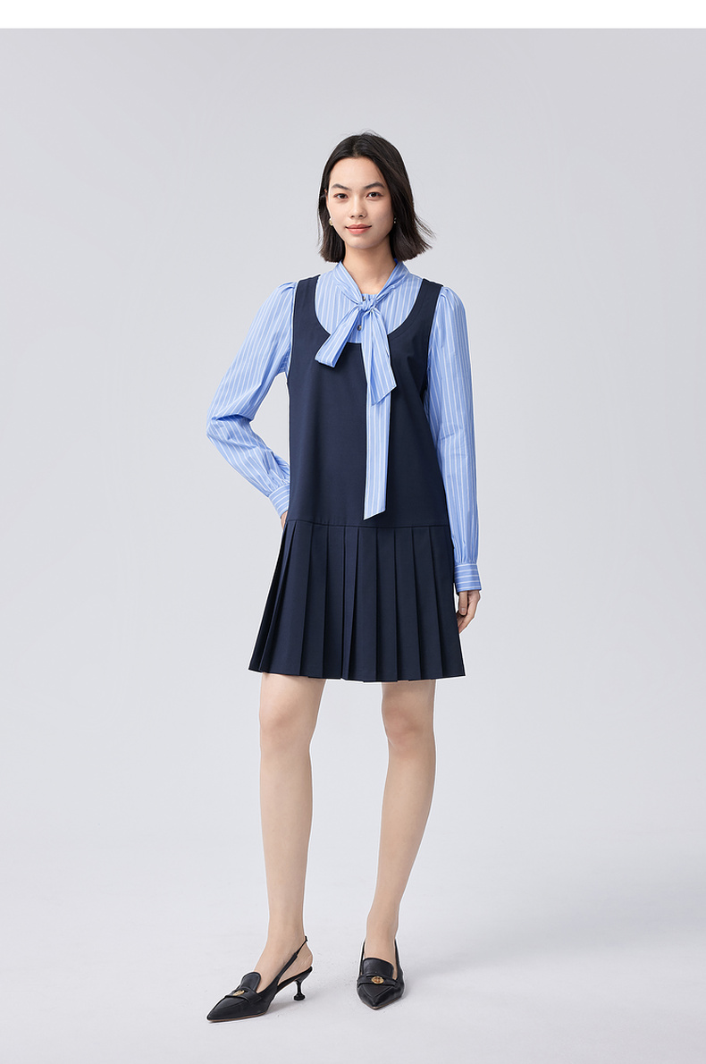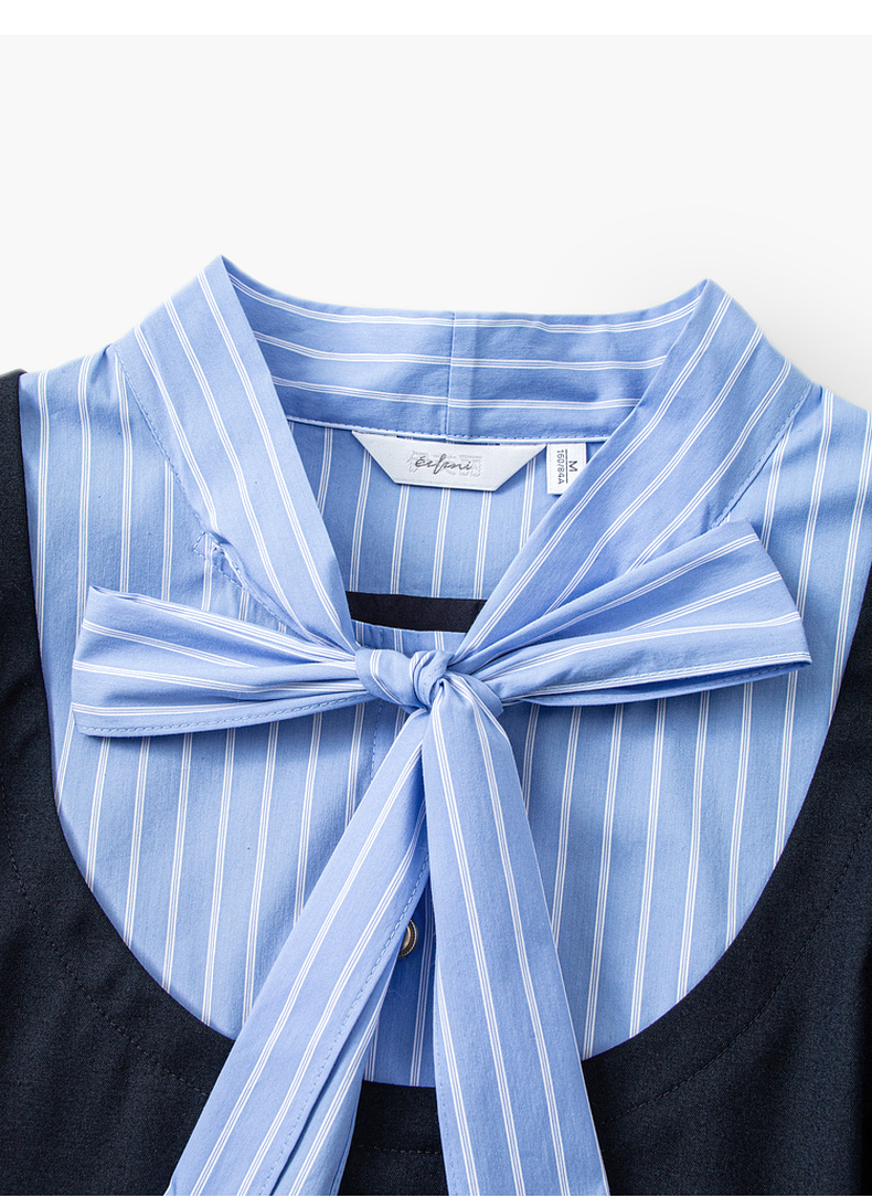 【严选】伊芙丽假两件大蝴蝶结系带领miu风连衣裙2024秋装新款学院套装1F8992561