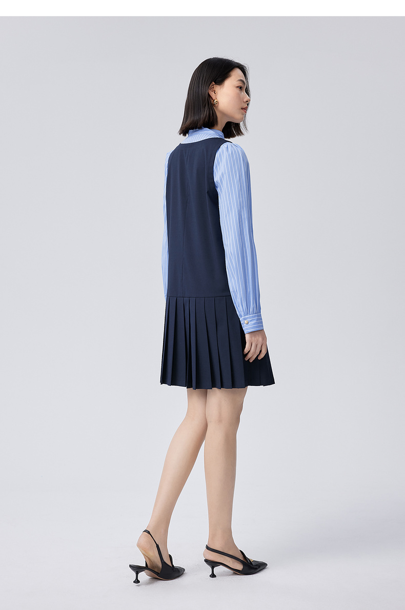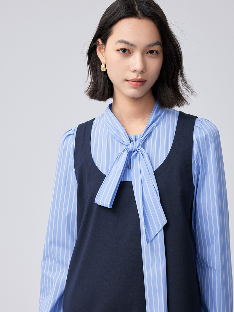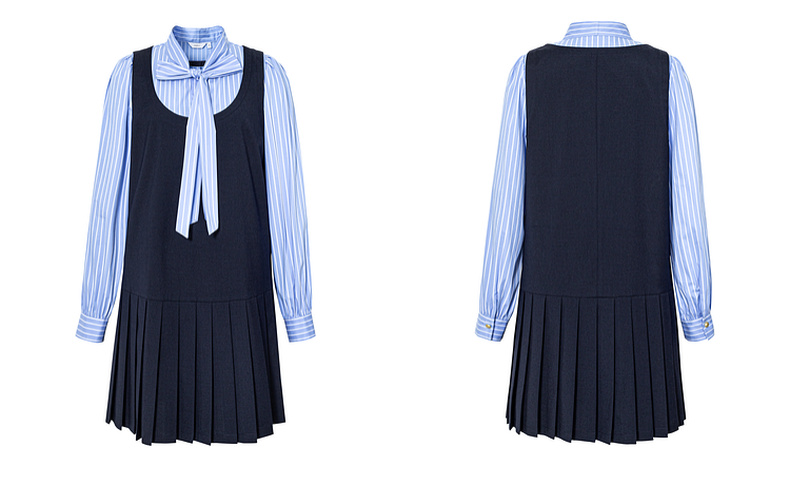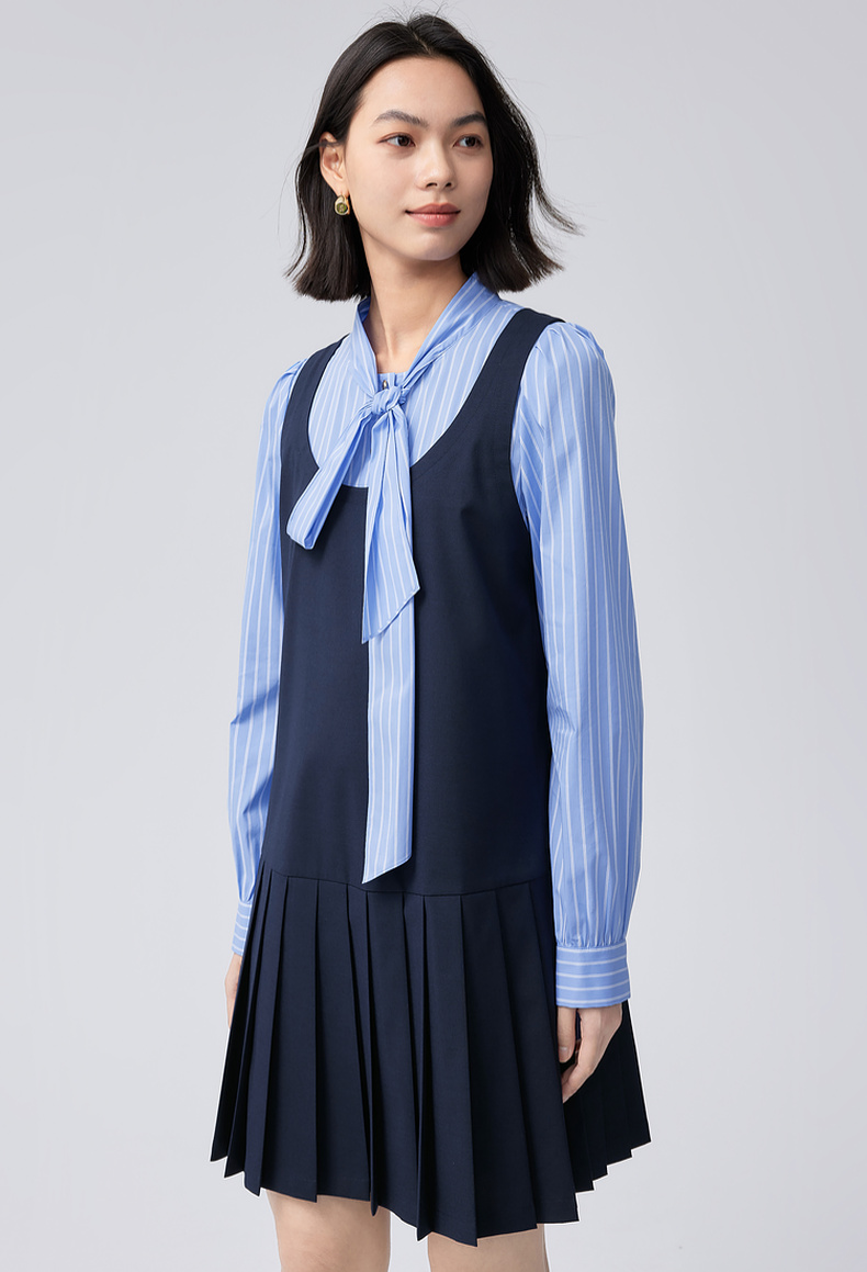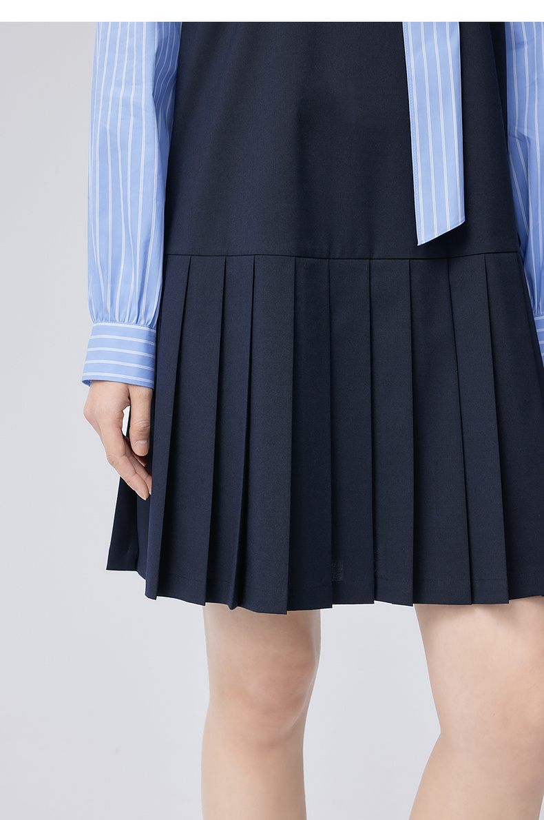 【严选】伊芙丽假两件大蝴蝶结系带领miu风连衣裙2024秋装新款学院套装1F8992561