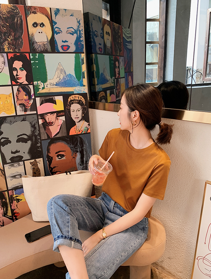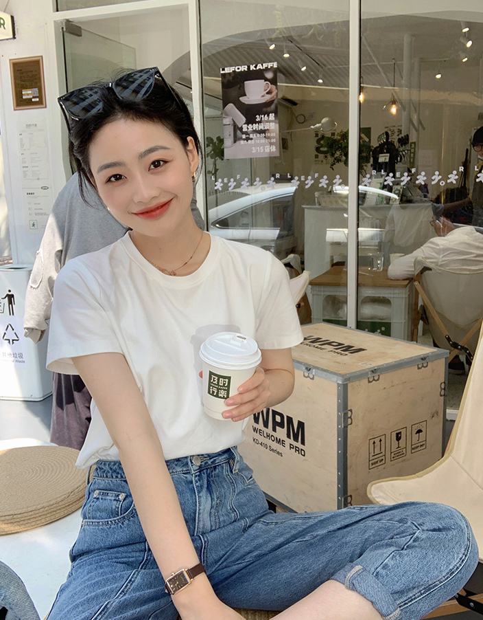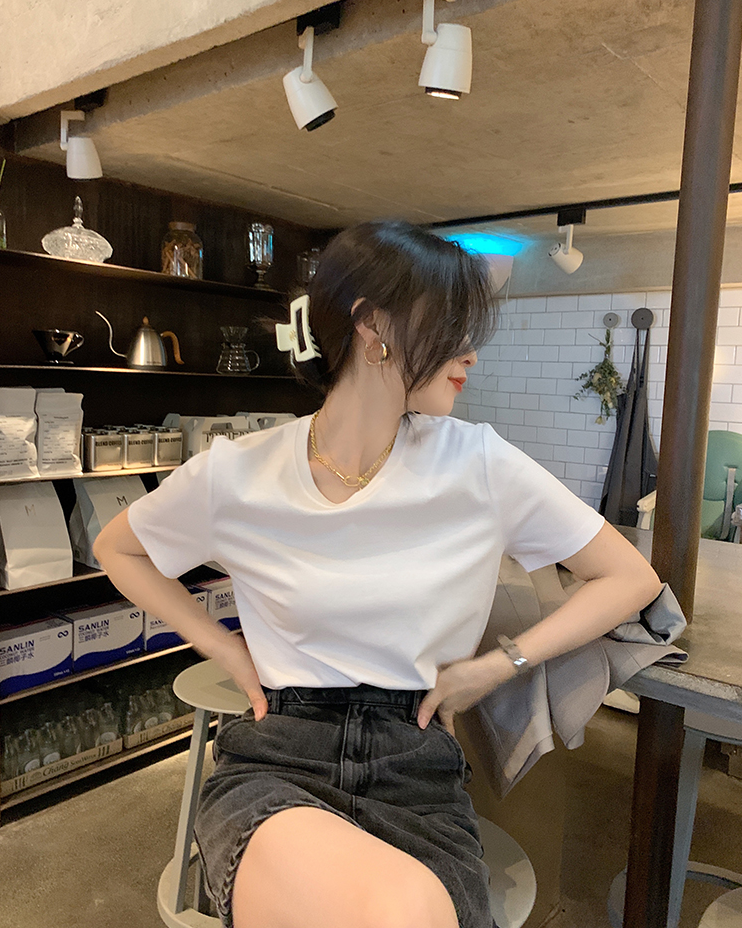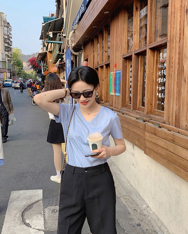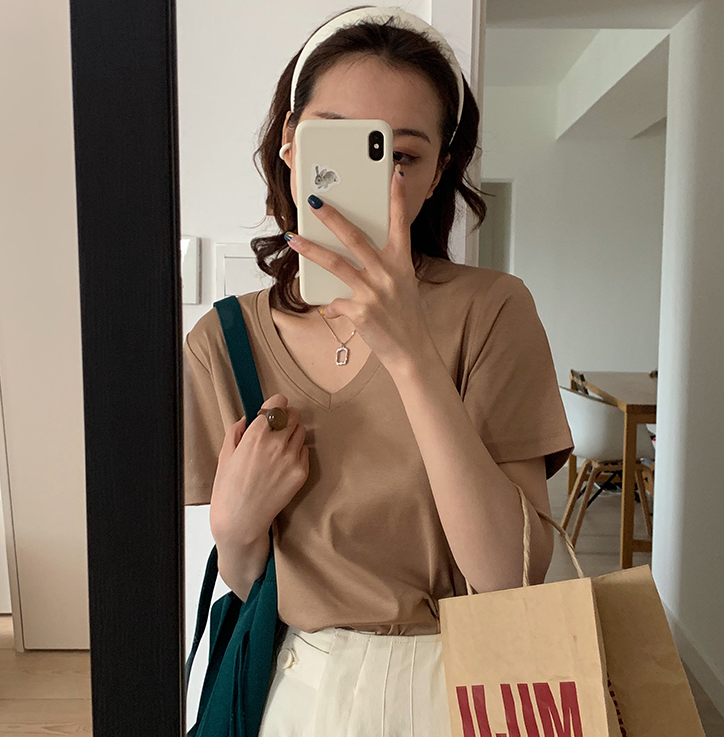 【118元2件,下单拍2!】V领!!丝光棉T恤女短袖宽松2022夏季新款半袖上衣潮SZ2643