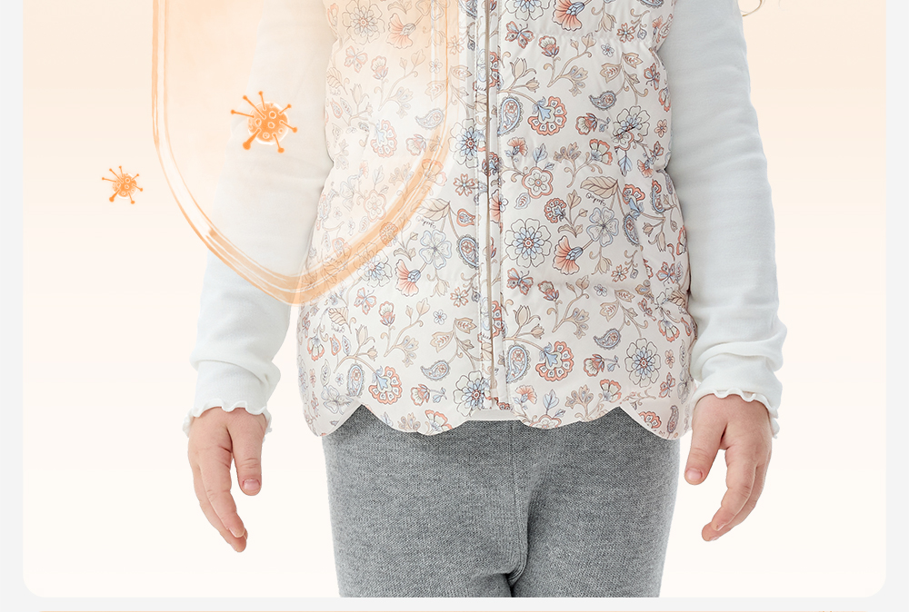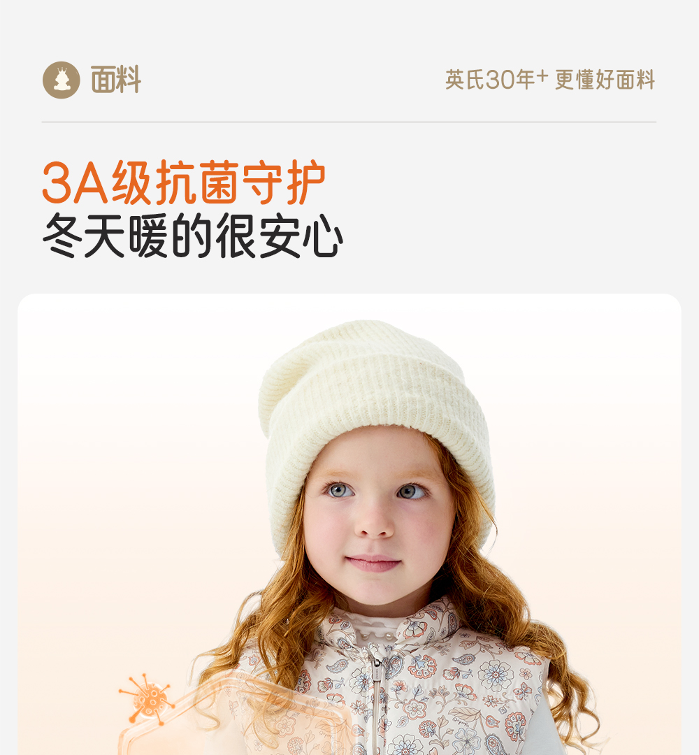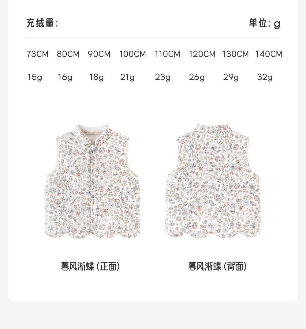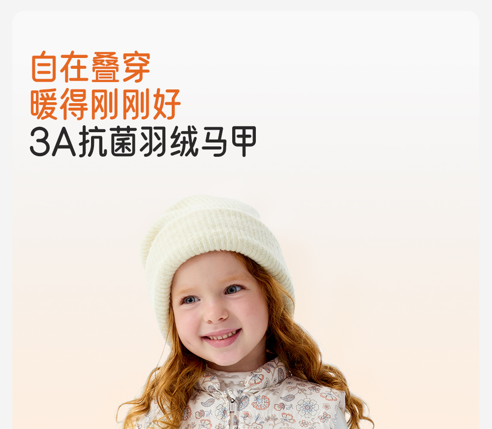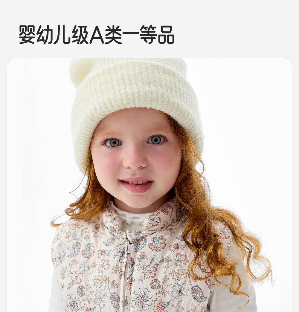 英氏女童印花羽绒马甲背心冬装保暖白鸭绒儿童外穿YRWHJ4R038A