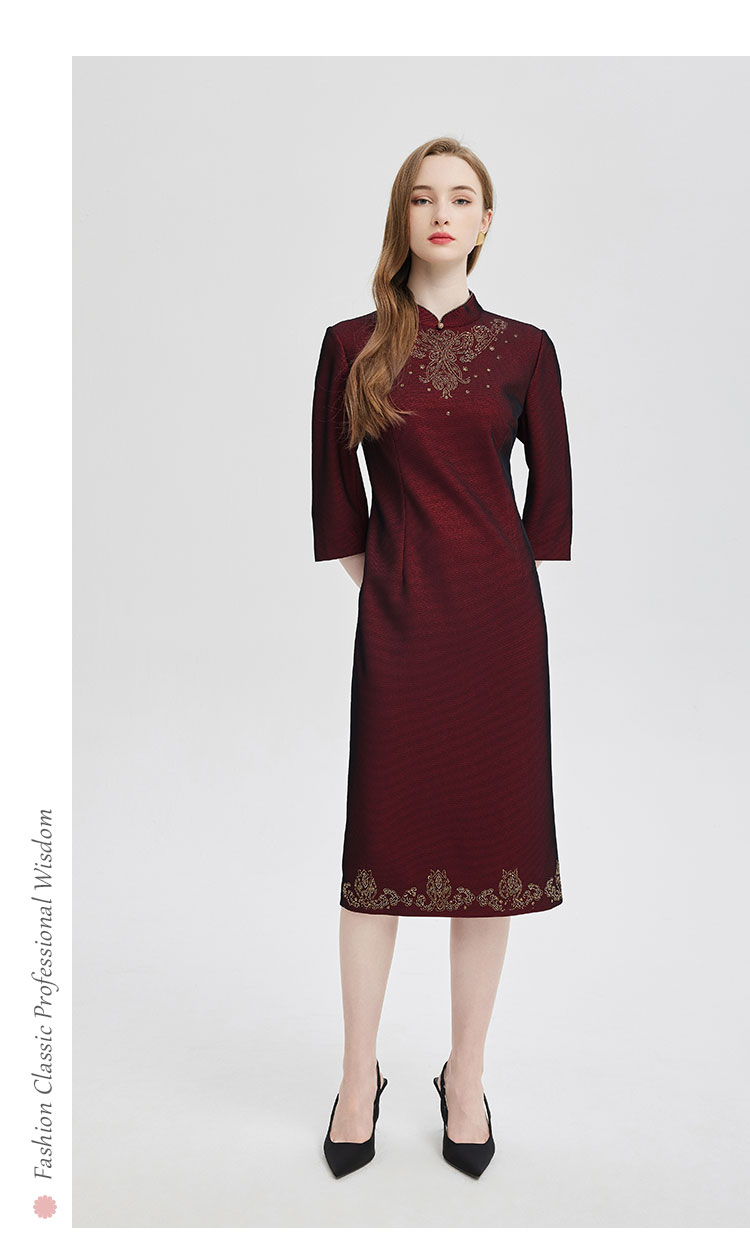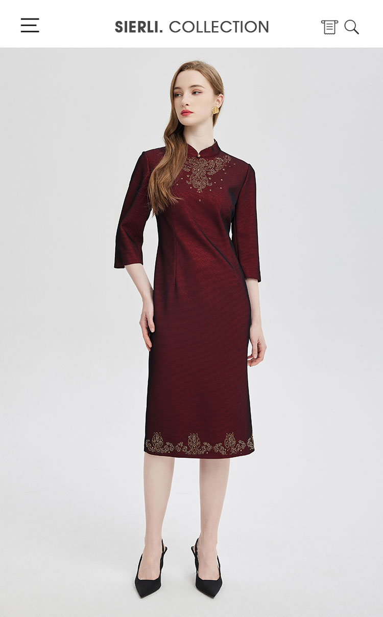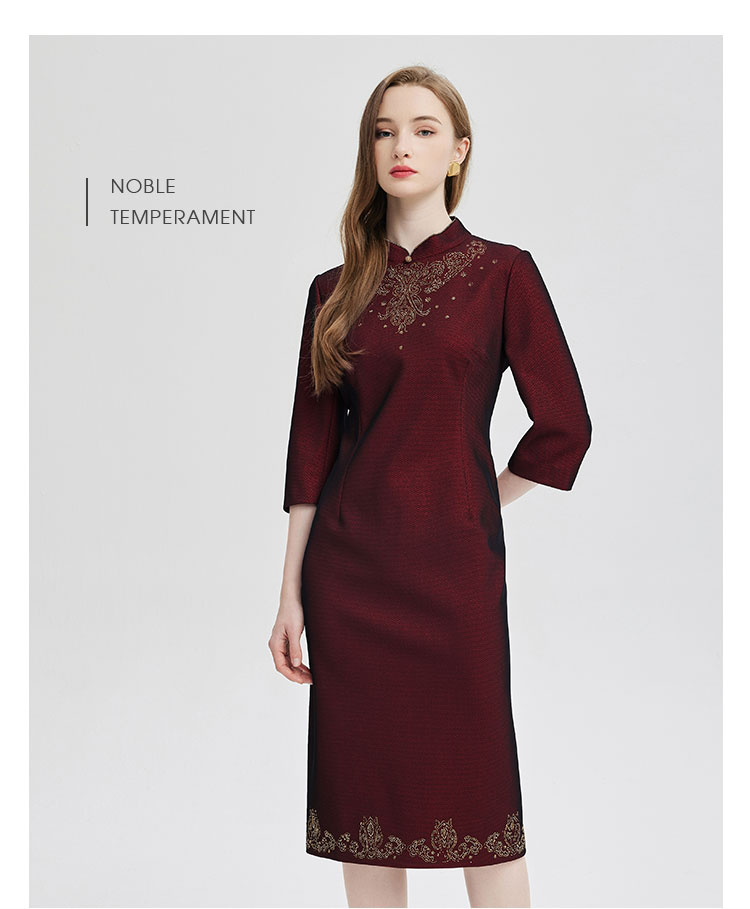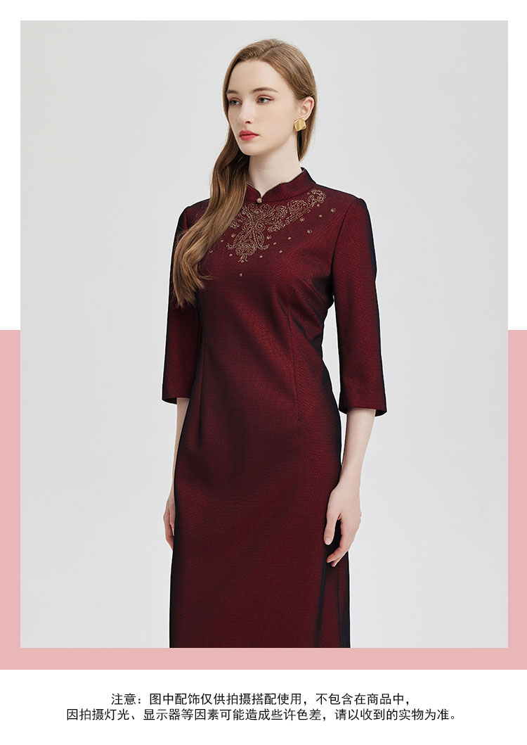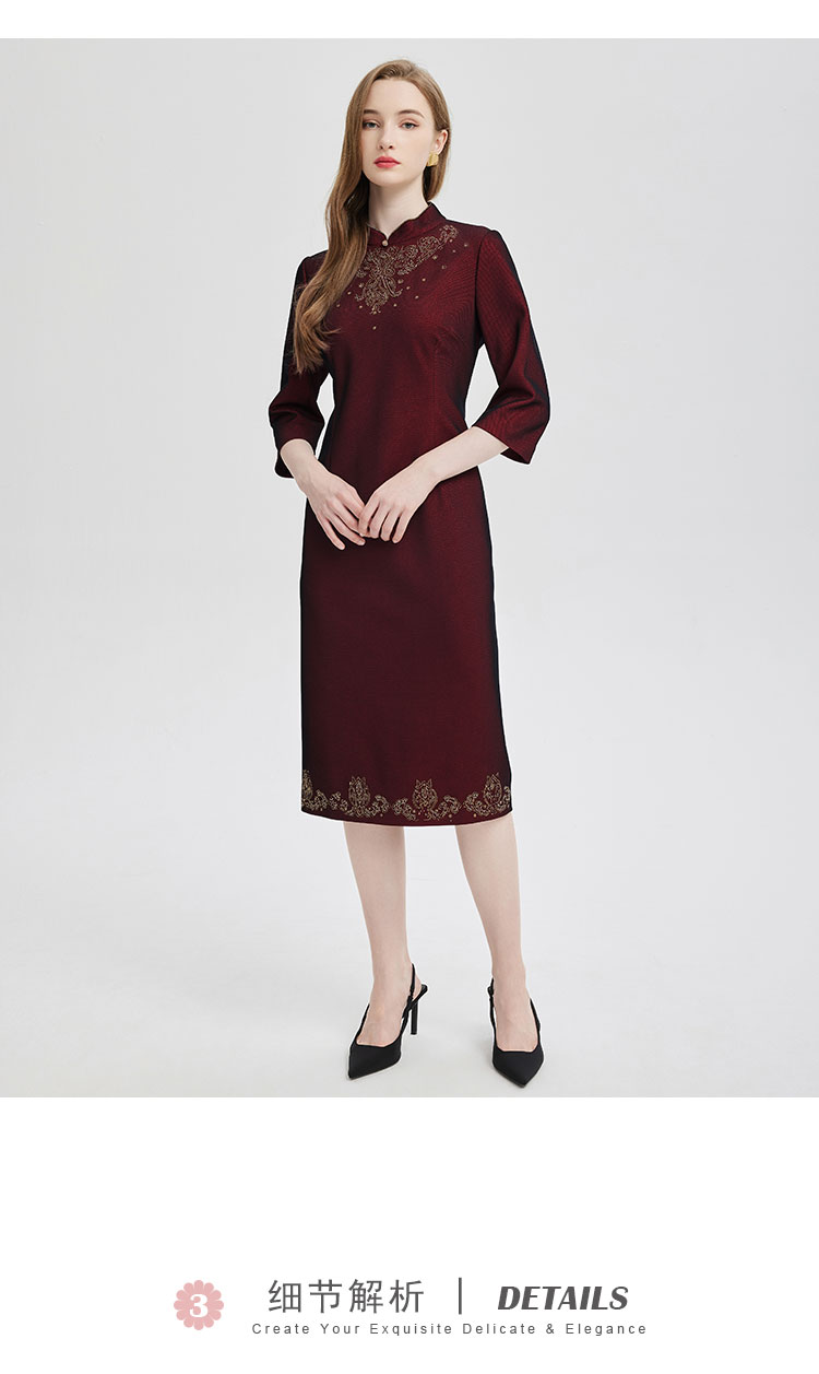 PE814斯尔丽24新款精致小克拉钻镶嵌工艺改良旗袍柔软宴会礼服连衣裙