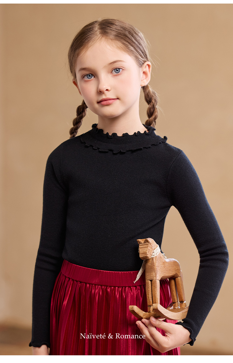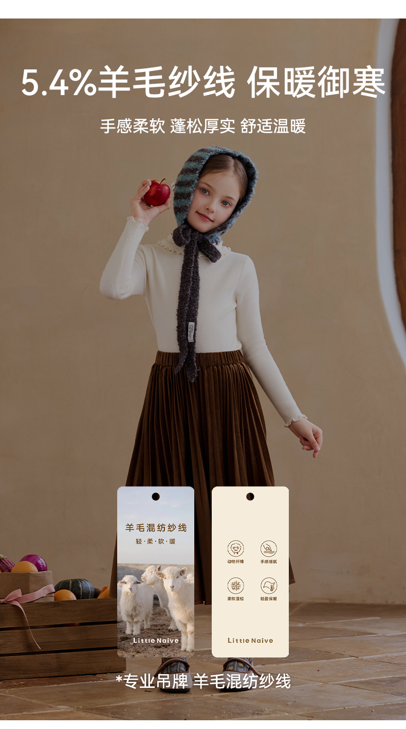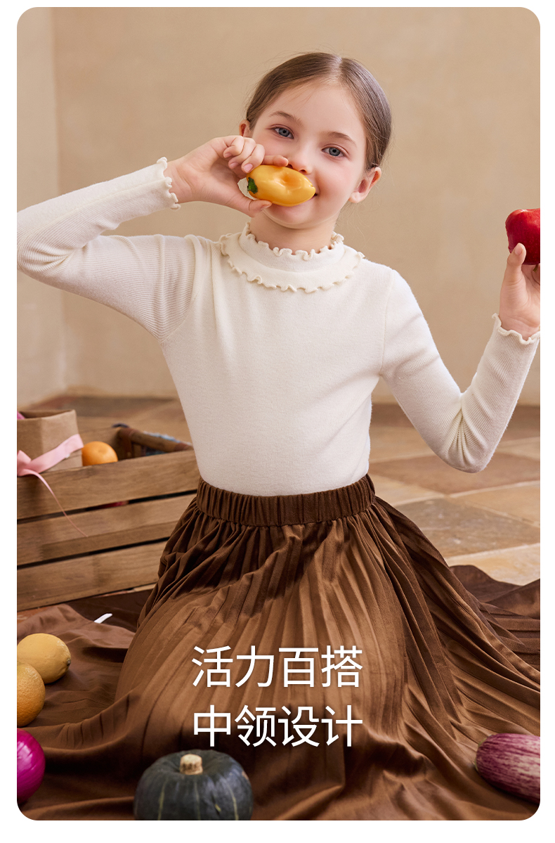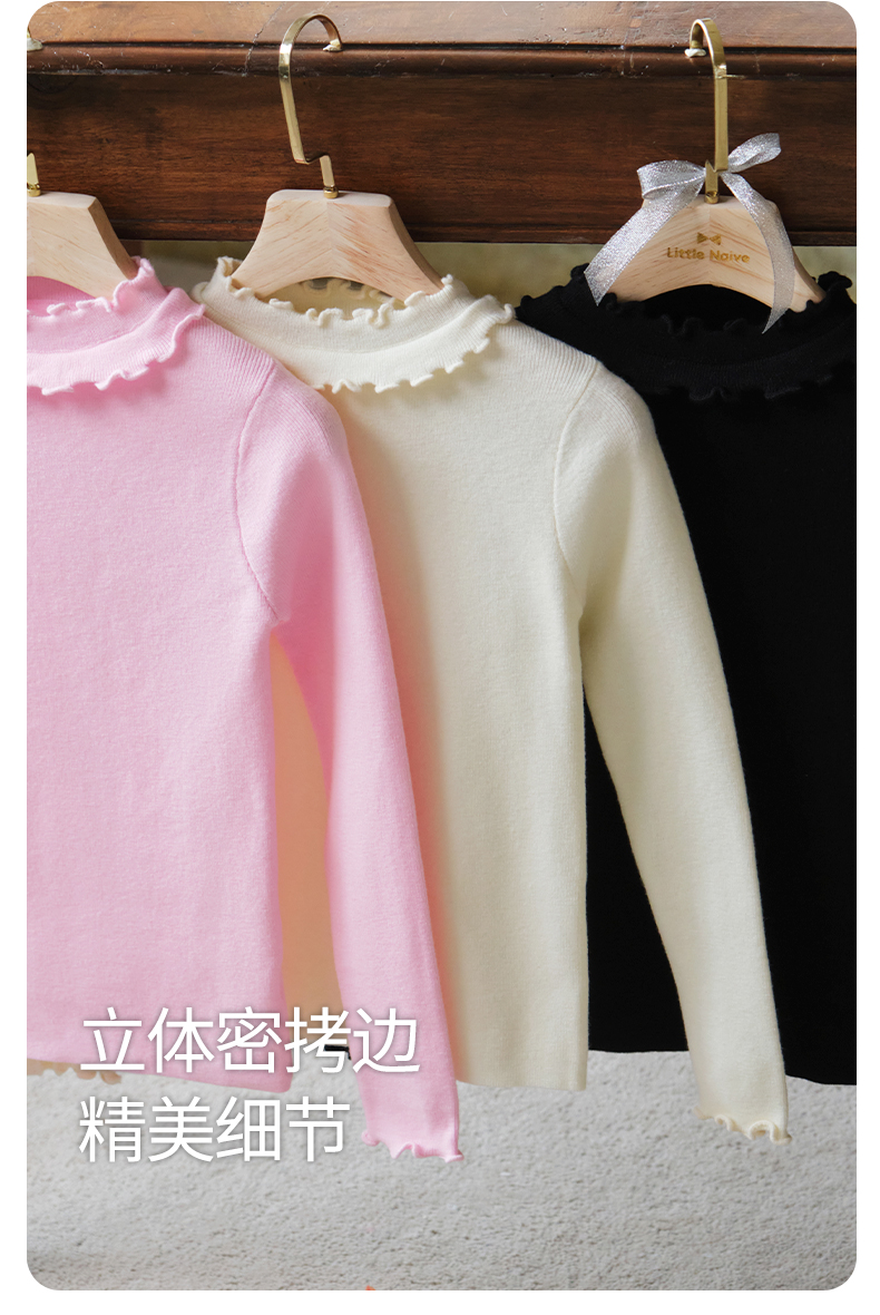 【云优选】LittleNaive女童修身打底衫秋季新款纯色内搭针织衫儿童百搭上衣