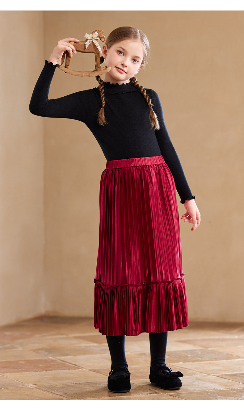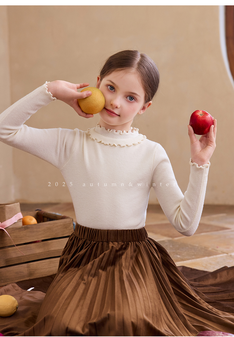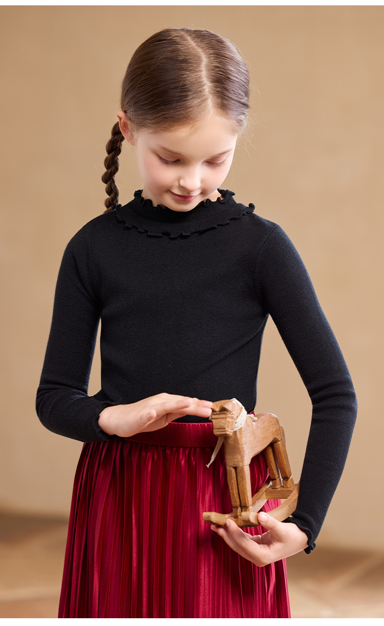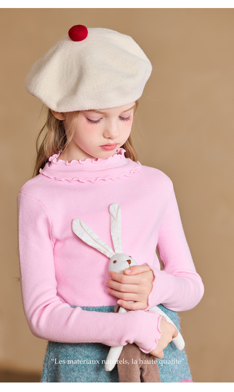 【云优选】LittleNaive女童修身打底衫秋季新款纯色内搭针织衫儿童百搭上衣