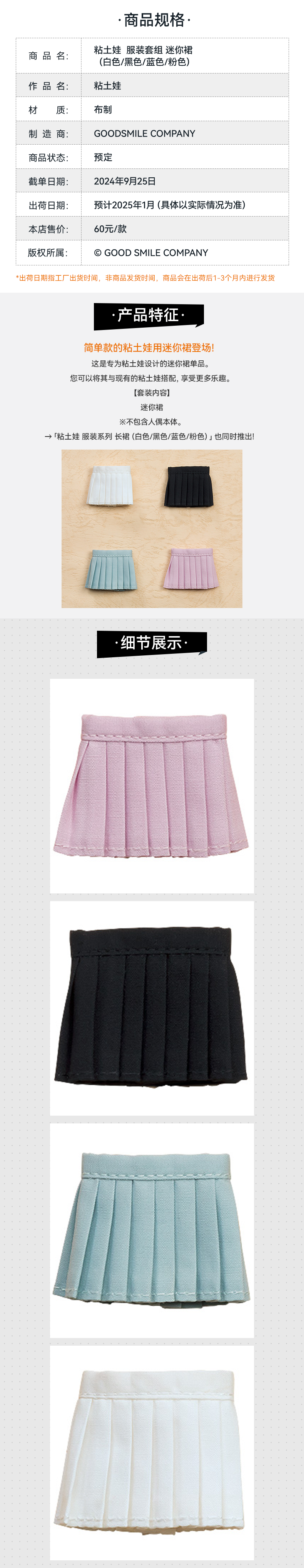 【GSC现货】粘土娃 服装套组 迷你裙 (白色/黑色/蓝色/粉色)