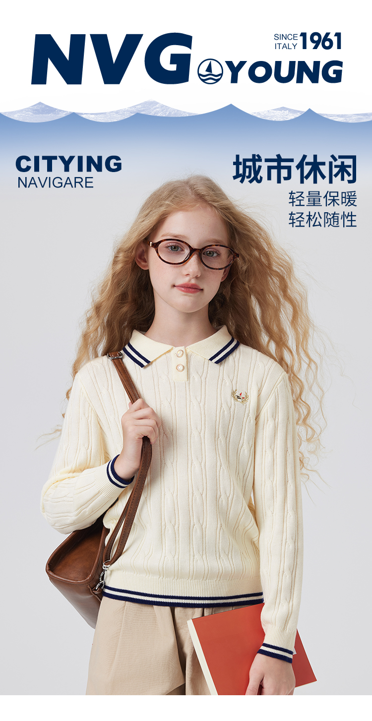 【纳维凯尔】【120-165】Navigare意大利小帆船女童针织衫