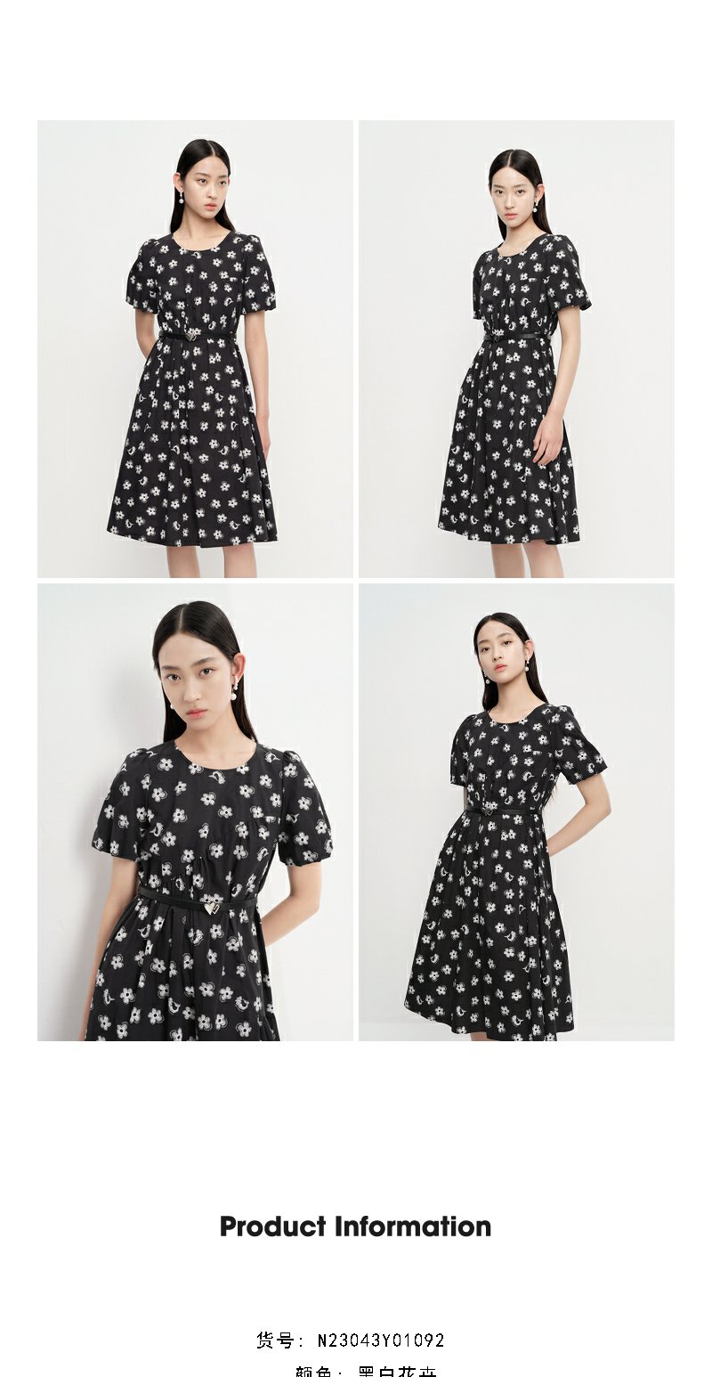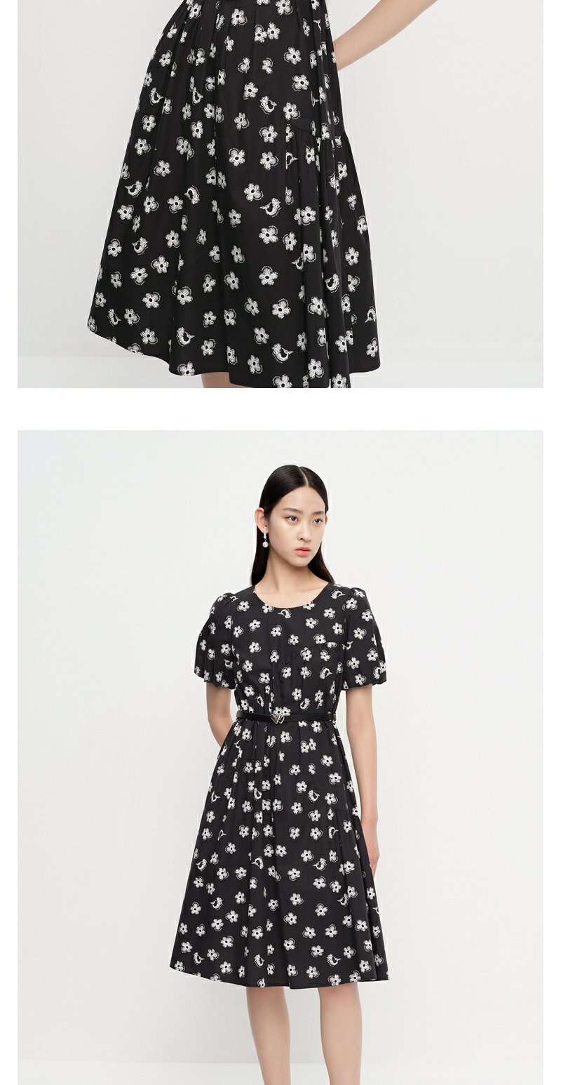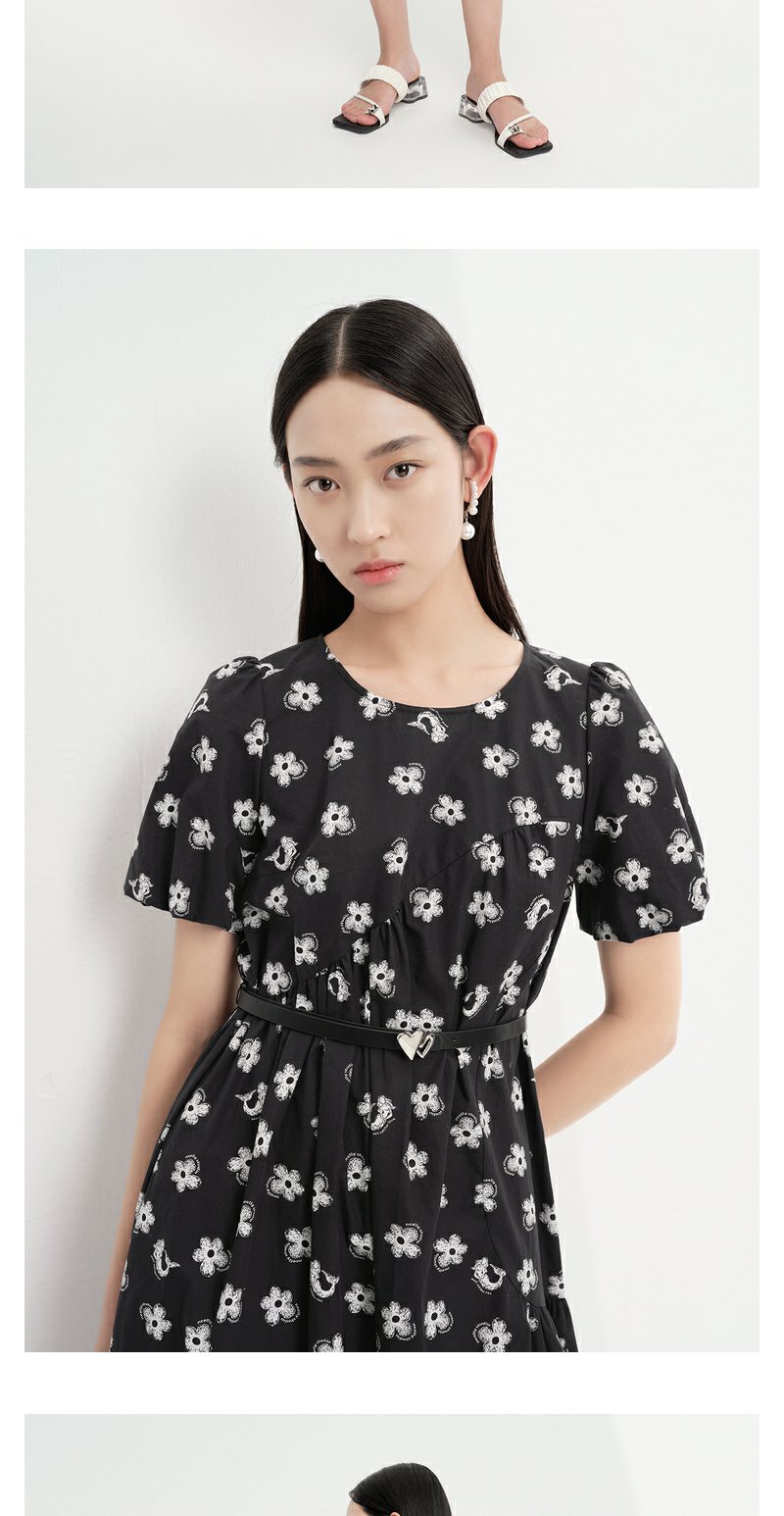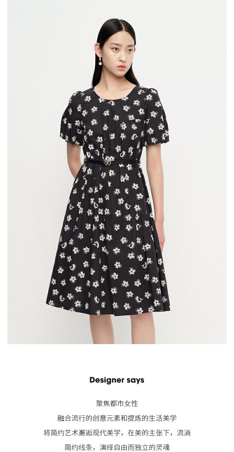 NEELLY纳俪商场同款碎花连衣裙女泡泡袖收腰A字裙中长款夏季新款N23043Y01092