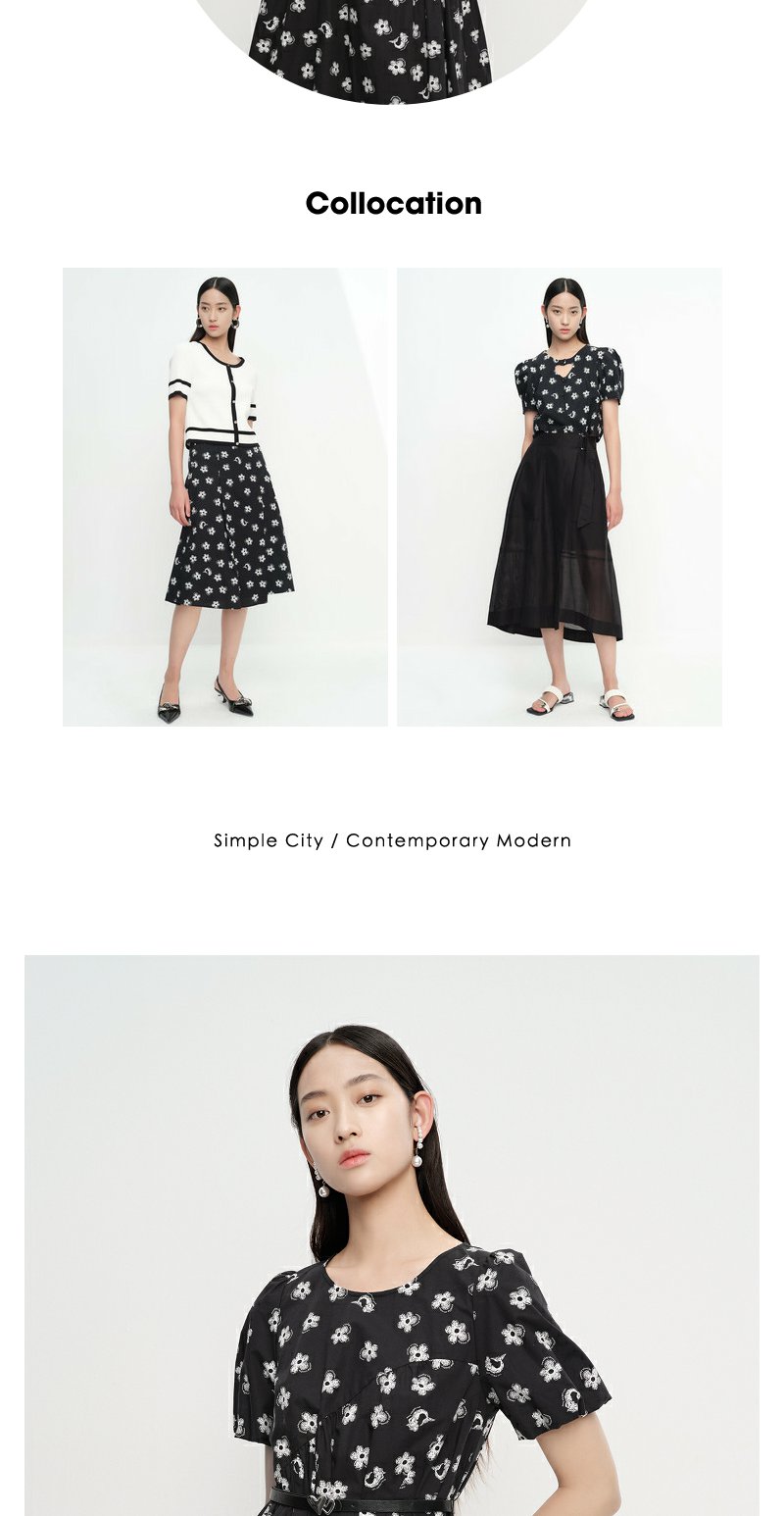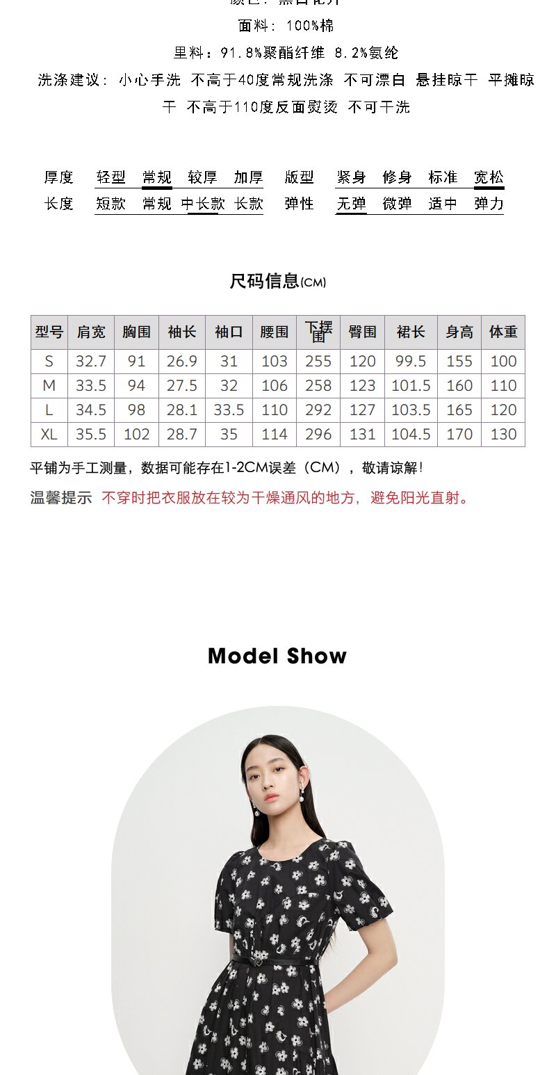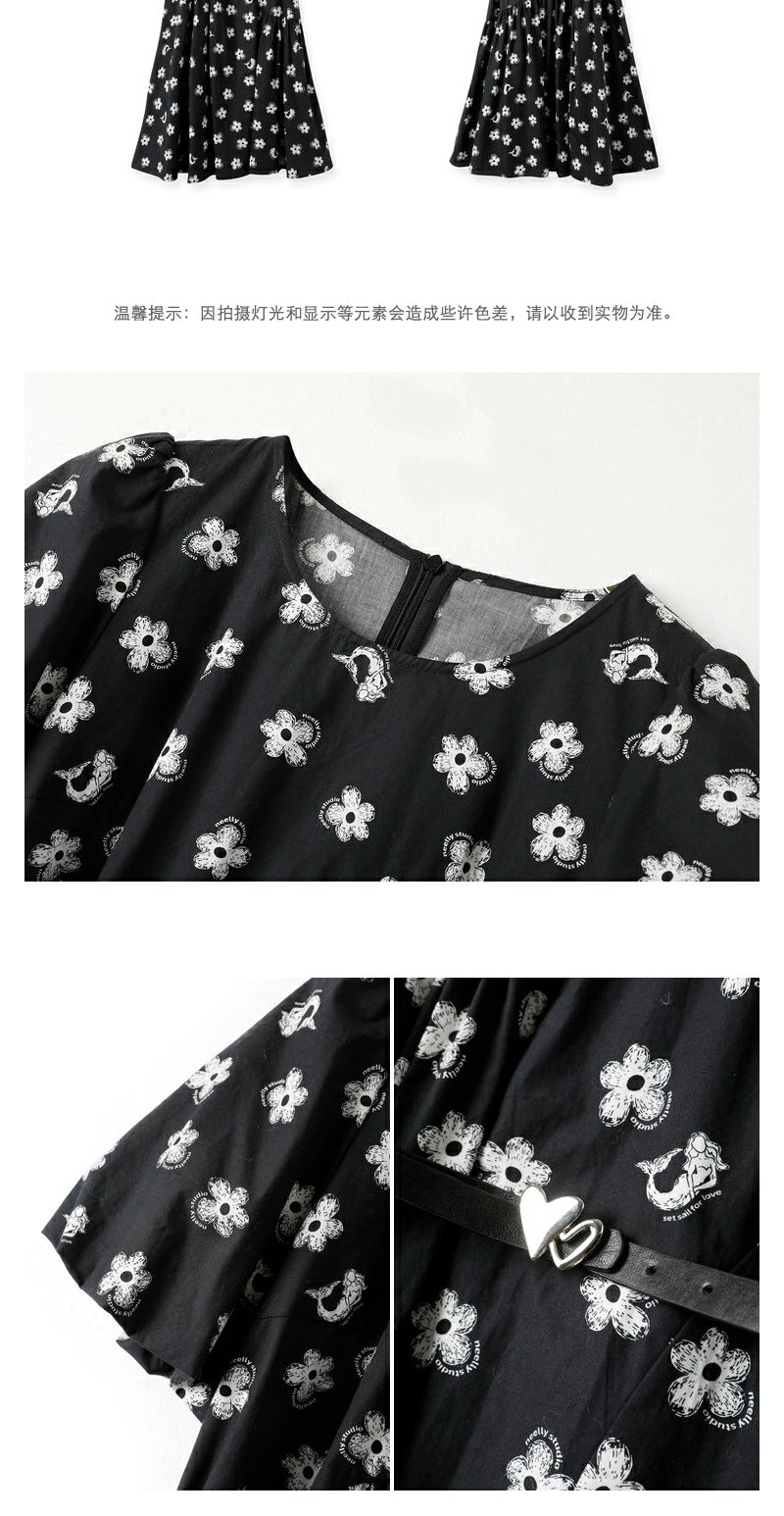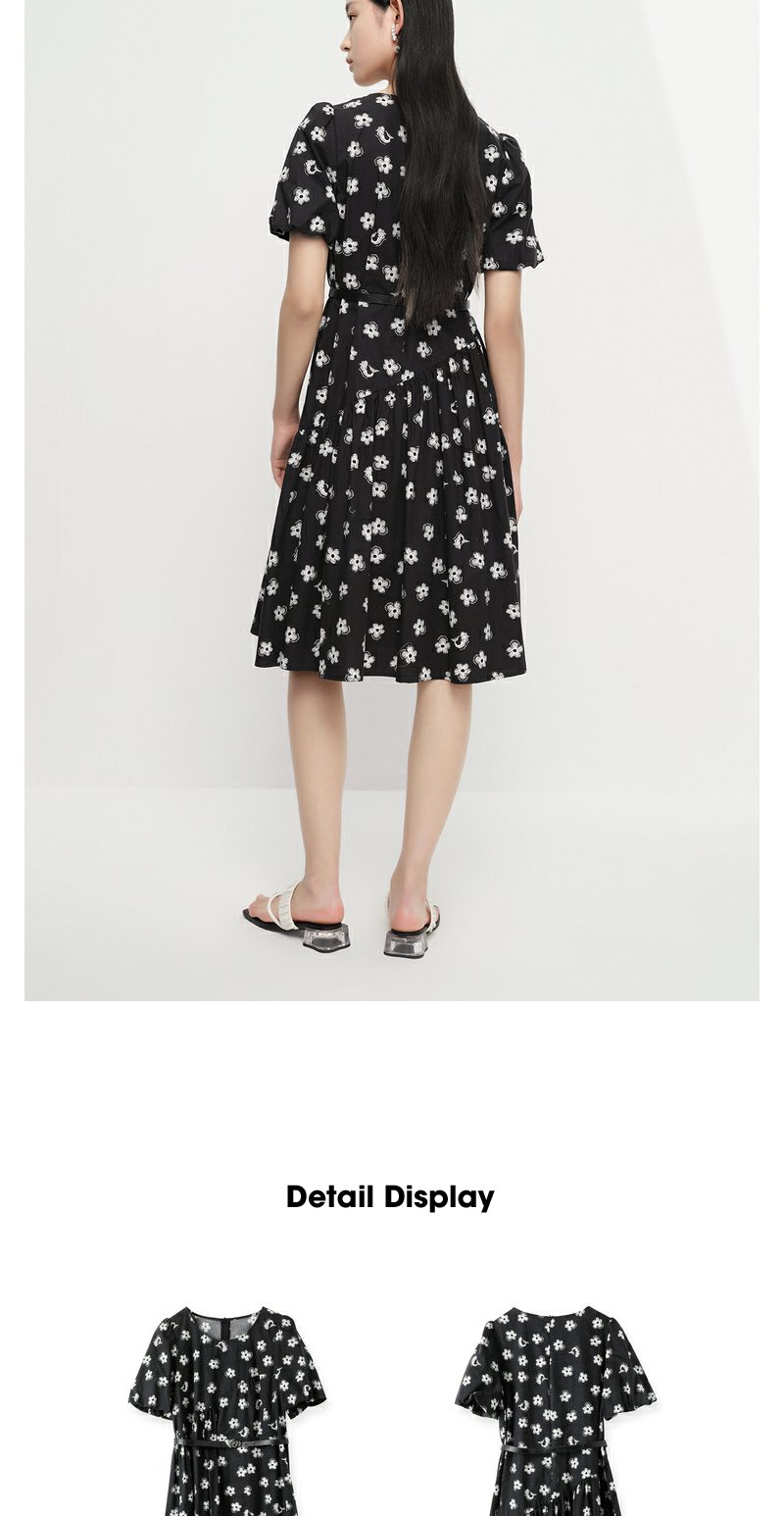 NEELLY纳俪商场同款碎花连衣裙女泡泡袖收腰A字裙中长款夏季新款N23043Y01092