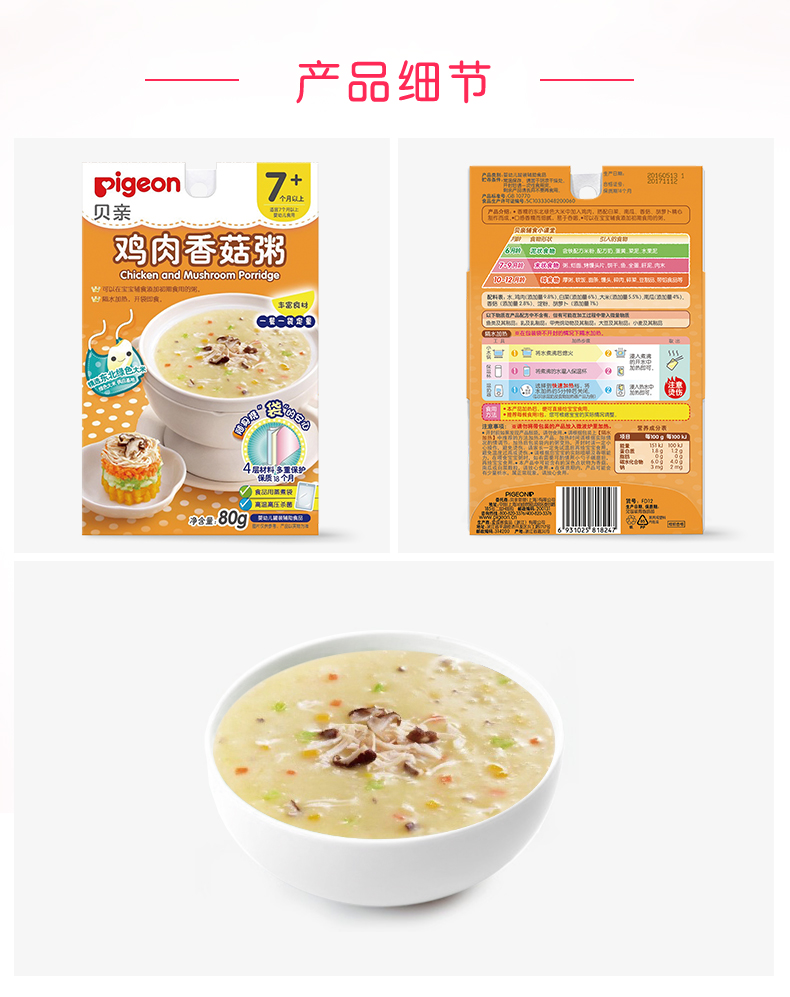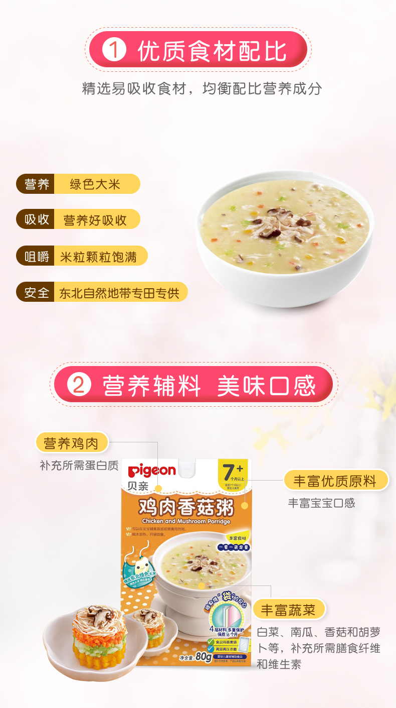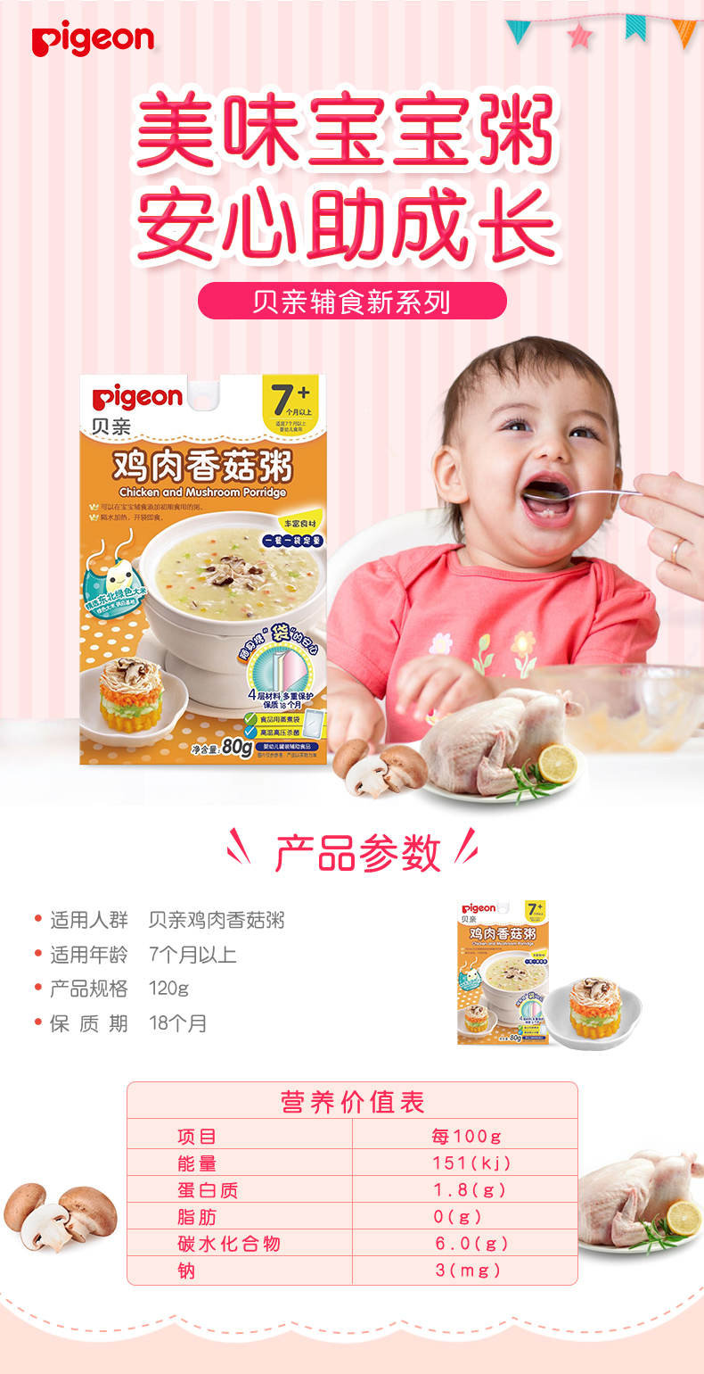 Pigeon贝亲宝宝鸡肉香菇粥80g(7-36个月)[FPLFD12]