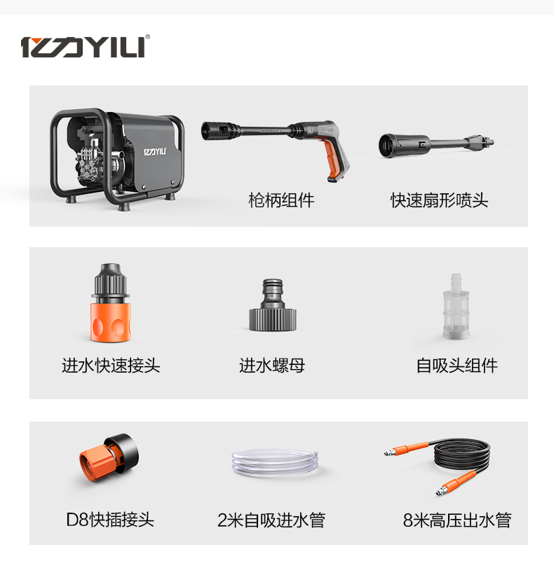 亿力YLQ6780G家商两用洗车机【5780】庭院清洗机高压220v自吸家用洗车水枪水泵冲洗地面大功率神器