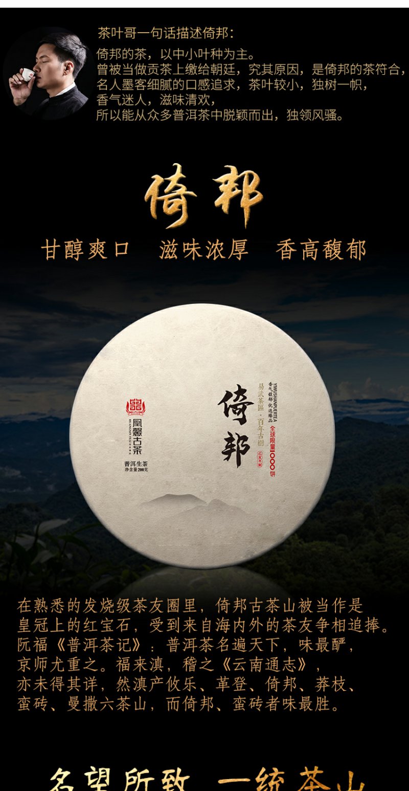 凰馨古茶倚邦普洱茶生茶易武古六大茶山580年古树纯料