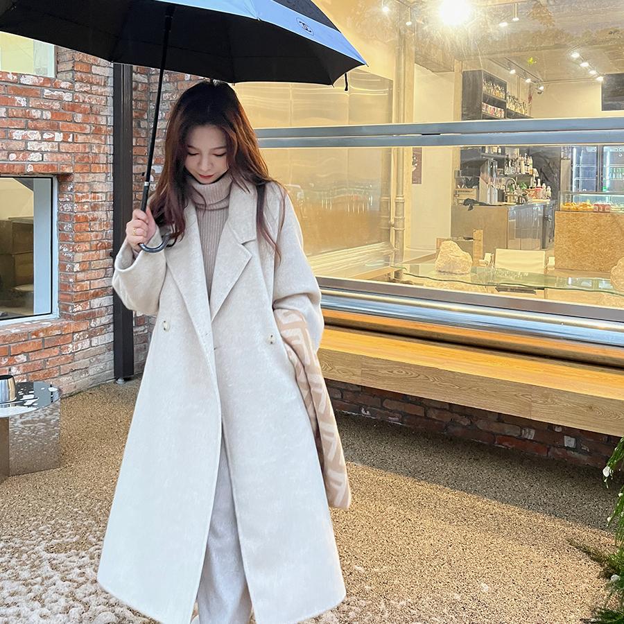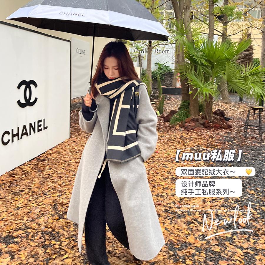 muu私服 双面婴驼绒大衣/ 设计师品牌私服系列~外套秋冬撞色通勤