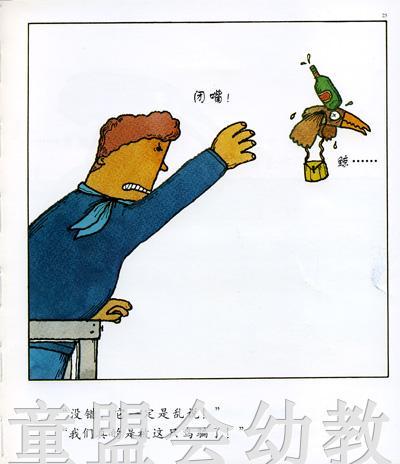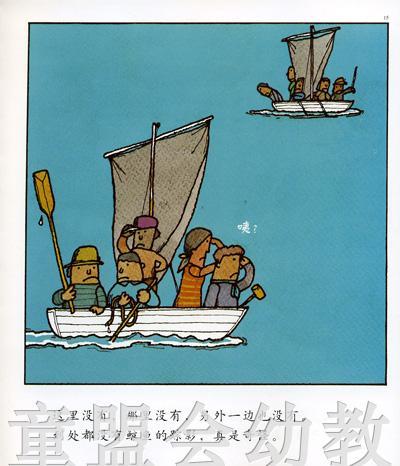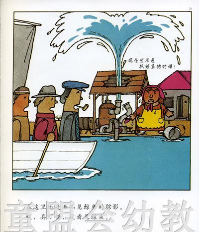 “啊!原来是这样!”几乎每个人看到结局,都有这种恍然大悟的惊叹:一只候鸟飞在天上,大喊着“鲸鱼”!可是,村子里的人们找来找去,都没有在湖里找到,他们开始抱怨候鸟欺骗了他们,可是,一个小孩子被候鸟带着飞上了天空,原来,村边的湖的形状跟鲸鱼一样,而一户人家坏了的水管喷上来的水正象是鲸鱼喷出来的水,原来候鸟也并没有骗人。其实有的时候,表面看到的东西不一定就是事实,而在你眼里是事实的事别人也不一定认同。什么才是真正的真相?一个看似简单的故事留给读者的是无穷的回味。