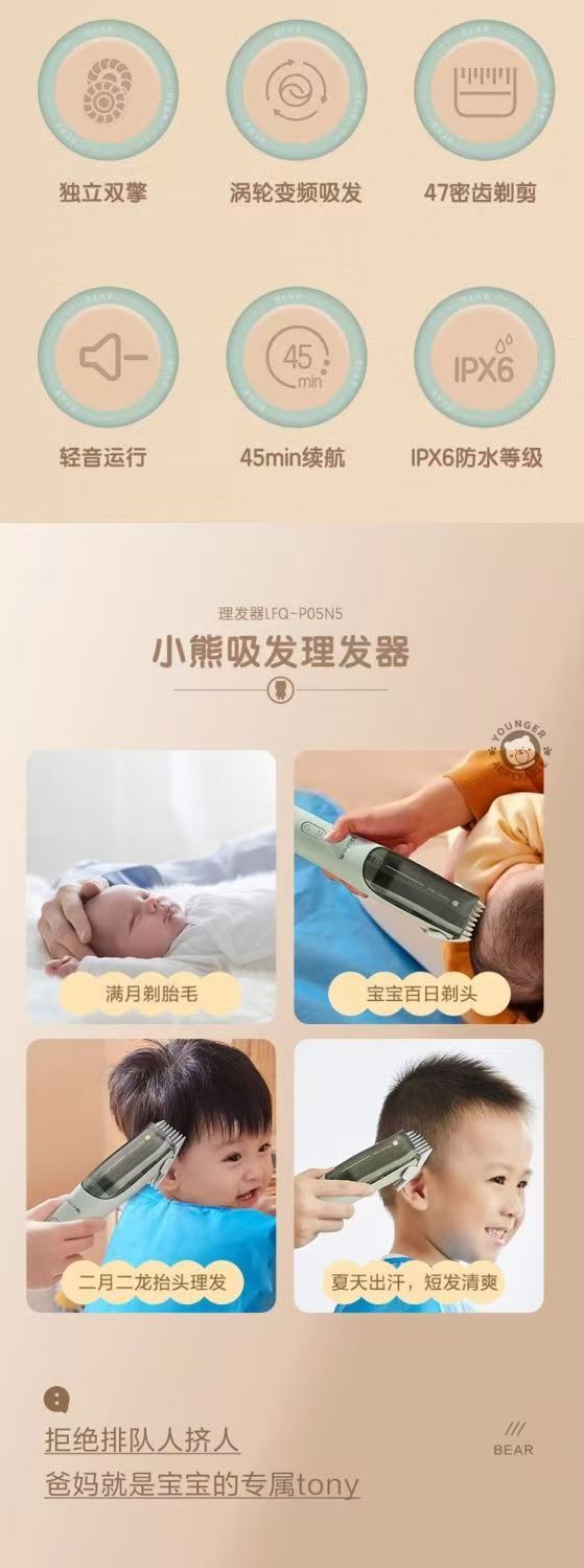 小熊婴儿理发器儿童剃发器自动吸发宝宝剃头电推子神器智能