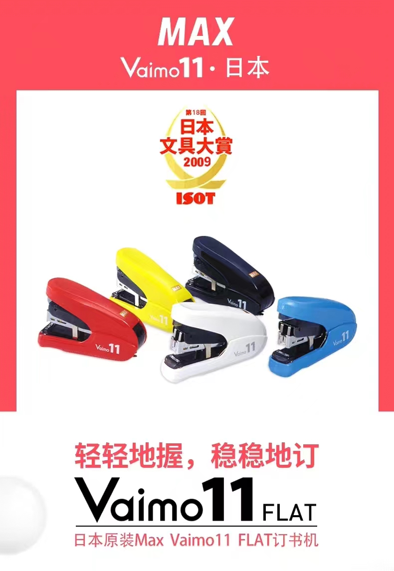 日本MAX美克司新一代Vaimo11 FLAT省力型平脚平针订书器