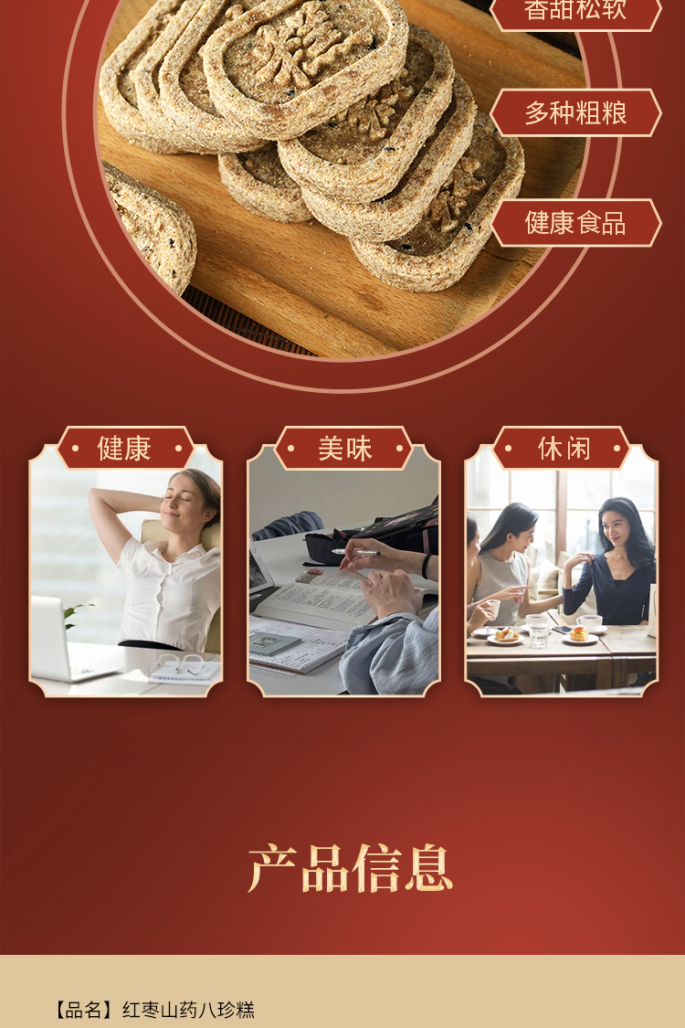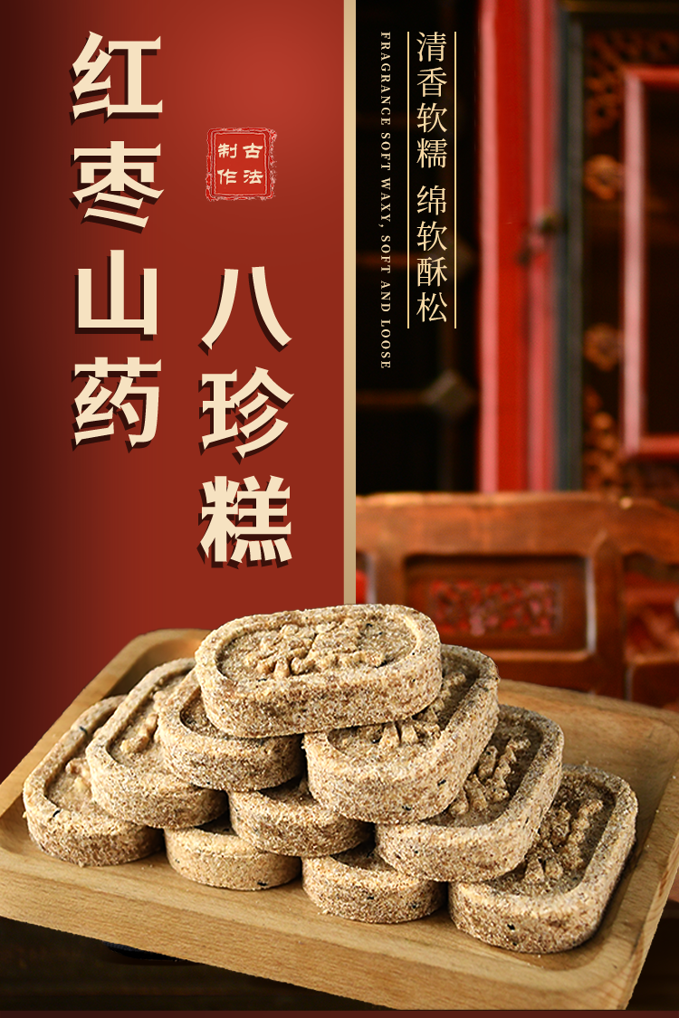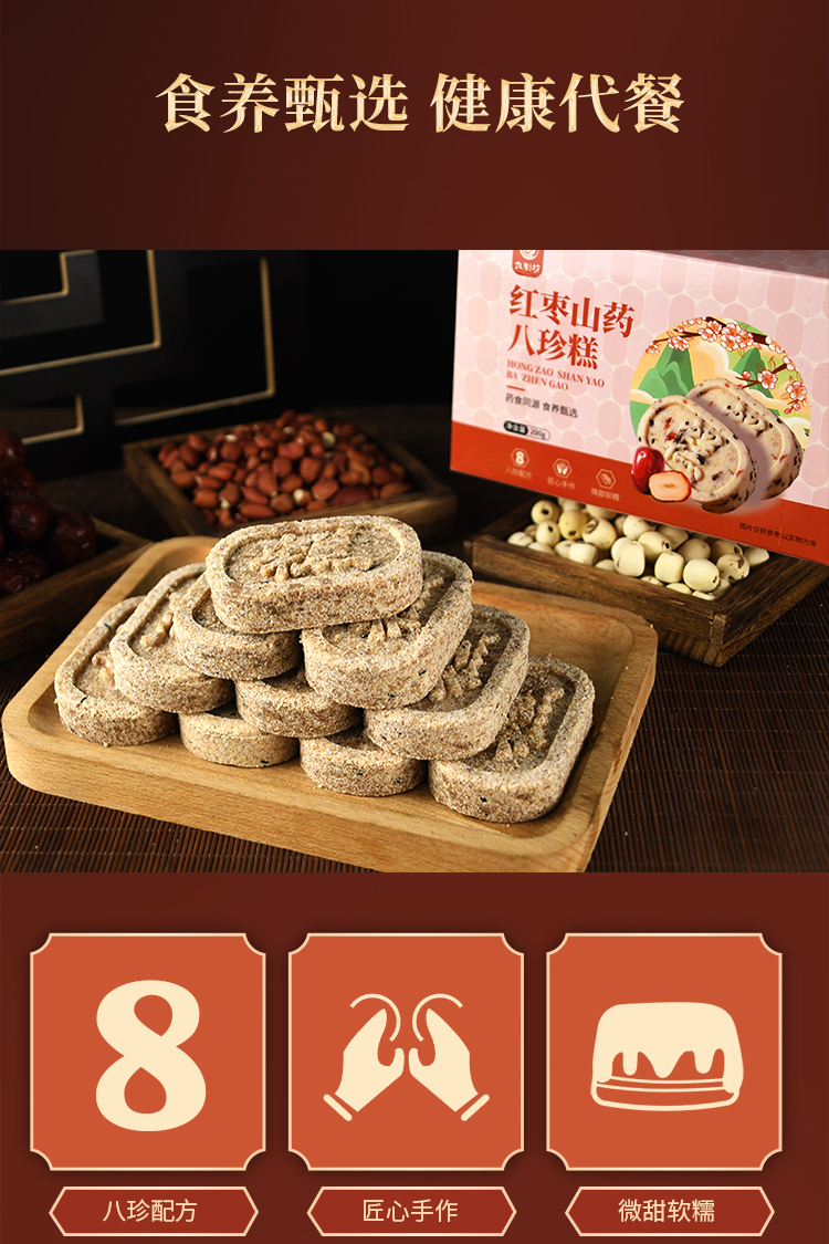 【九制坊红枣山药八珍糕】山药薏米鸡内金茯苓莲子山楂芝麻小袋包装无糖200g/盒