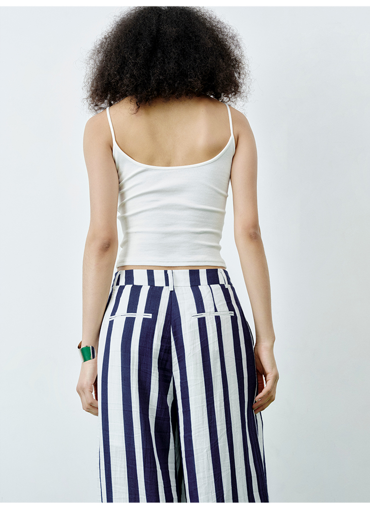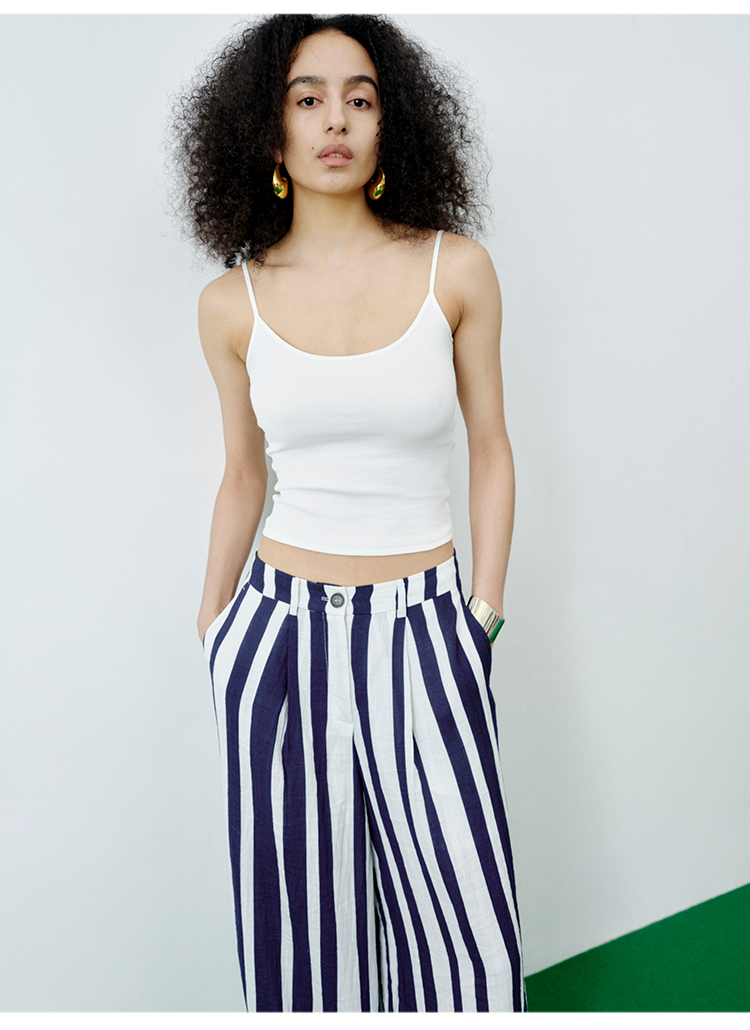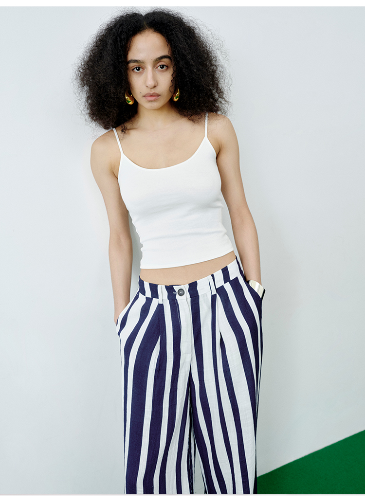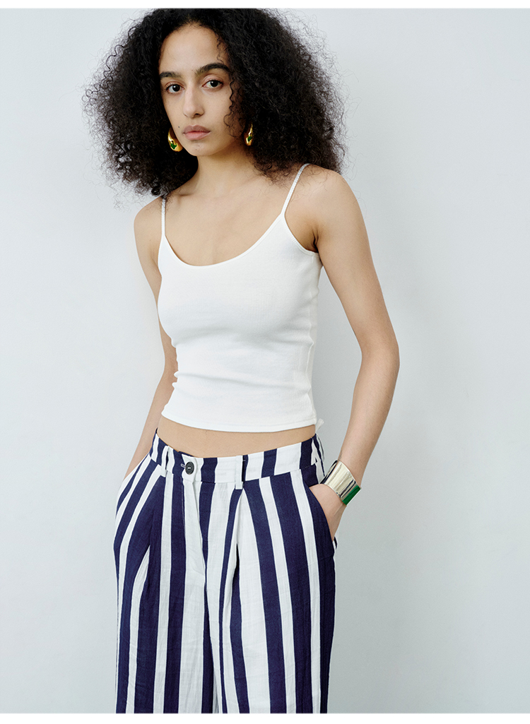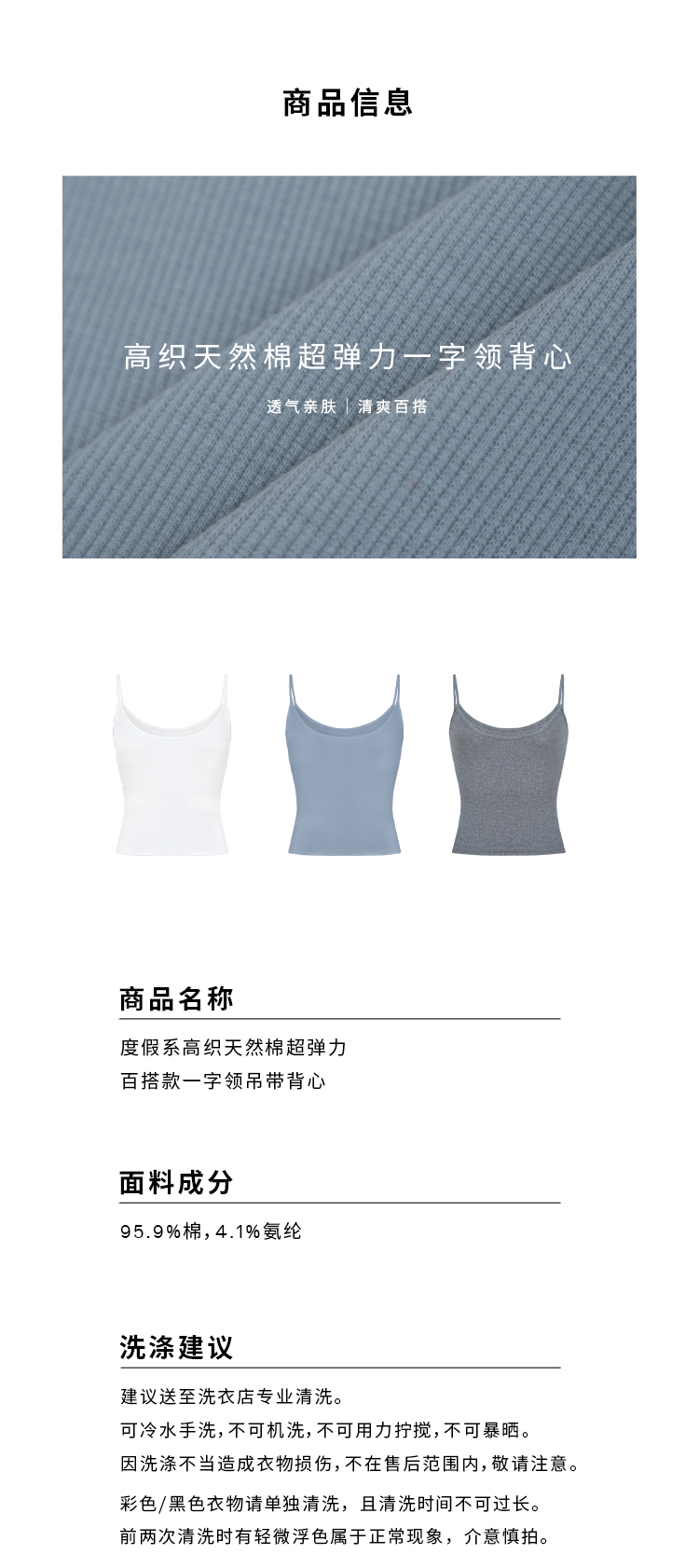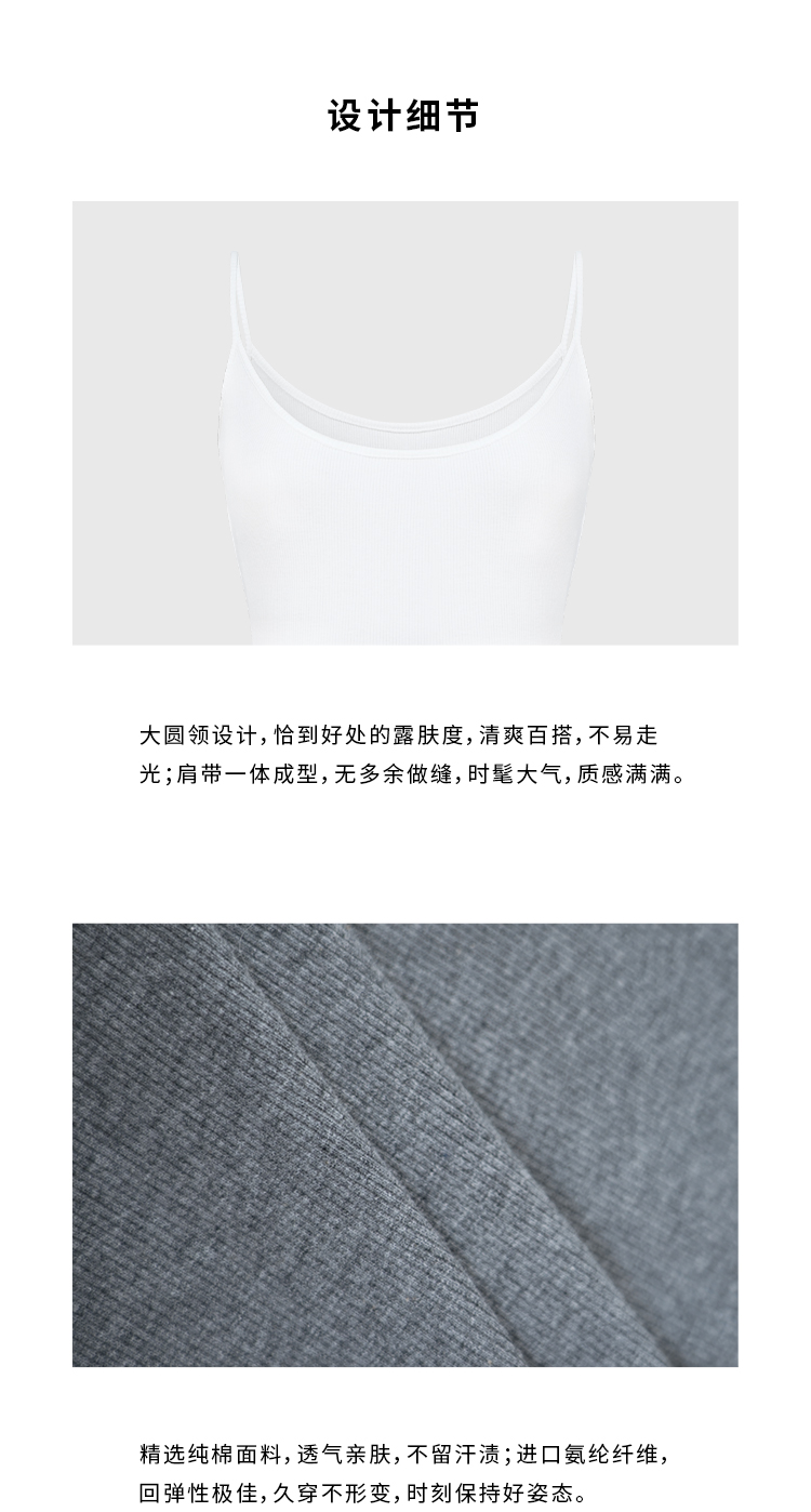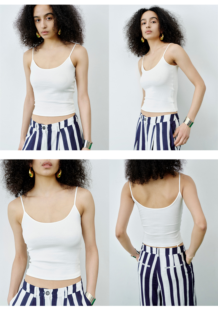 HIDEMI 度假系高织天然棉超弹力百搭款一字领吊带背心/灰色/白色/雾霾蓝