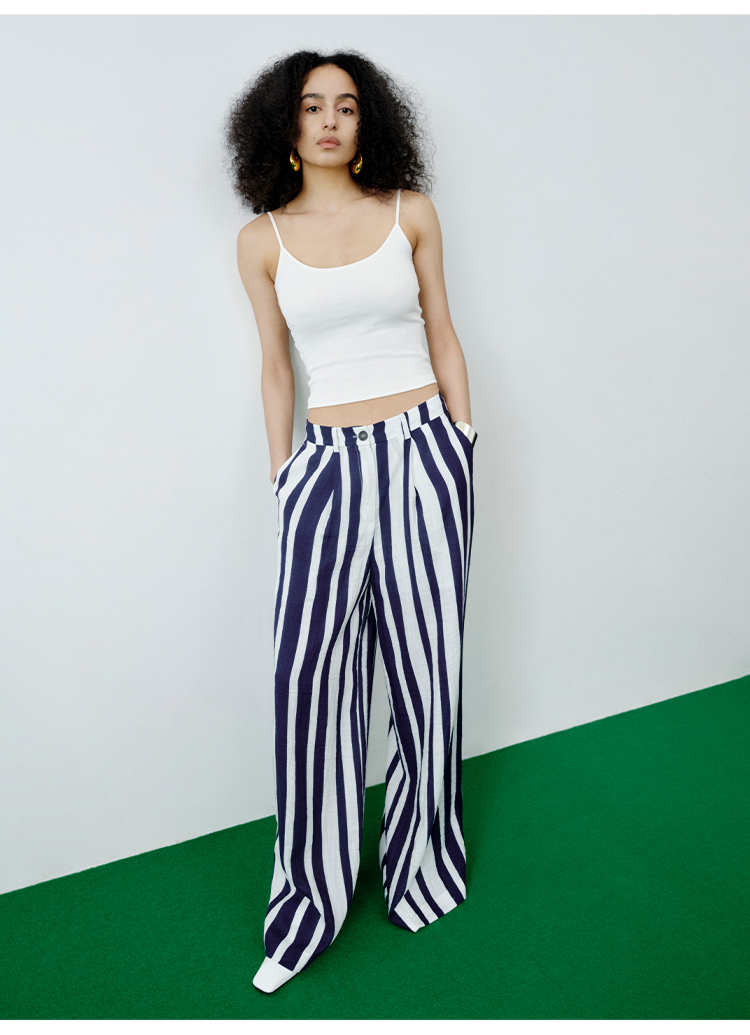 HIDEMI 度假系列水洗亚麻手绘印花手工包皮边四件套 v领上衣/九分裤/短裤/背心