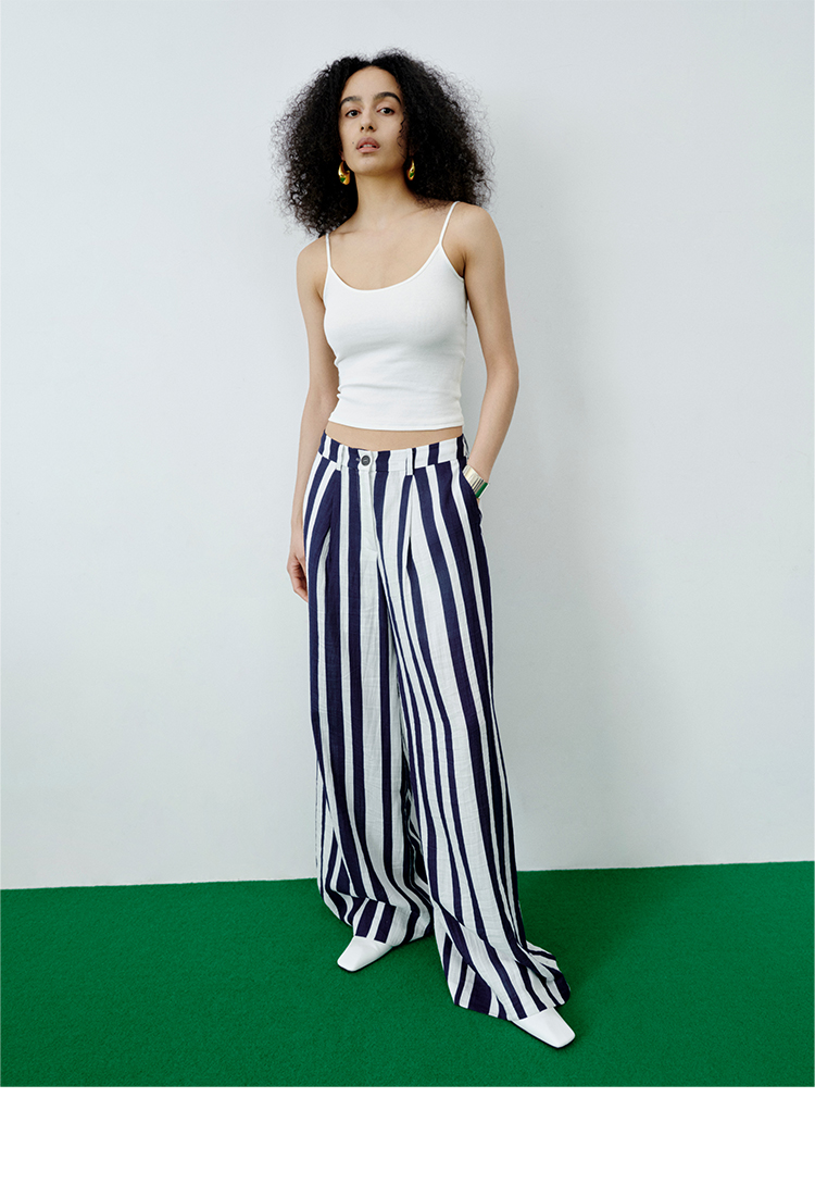 HIDEMI 柔顺感后开衩长裤 白色/炼乳黄/黑色