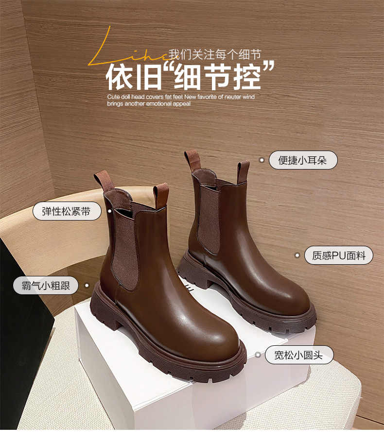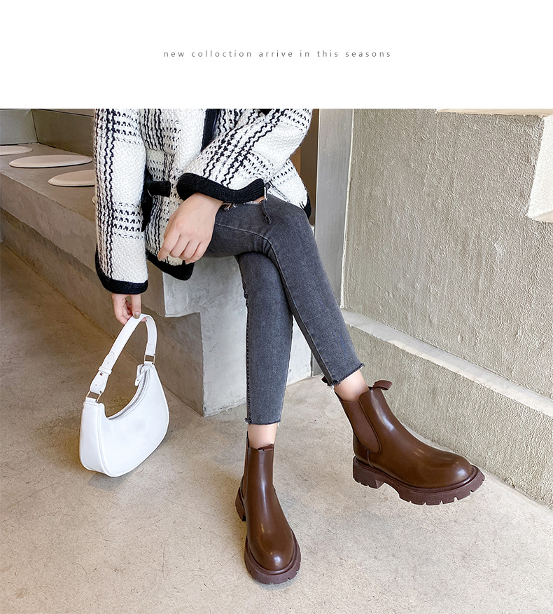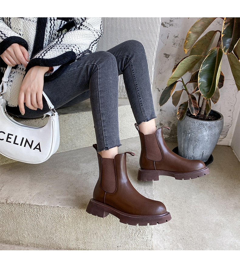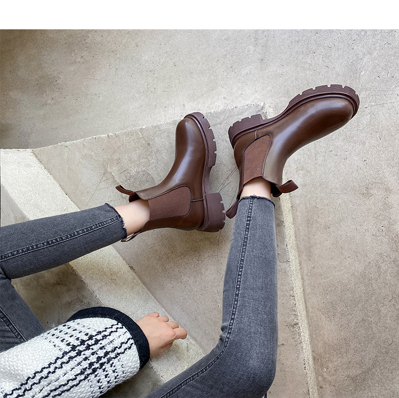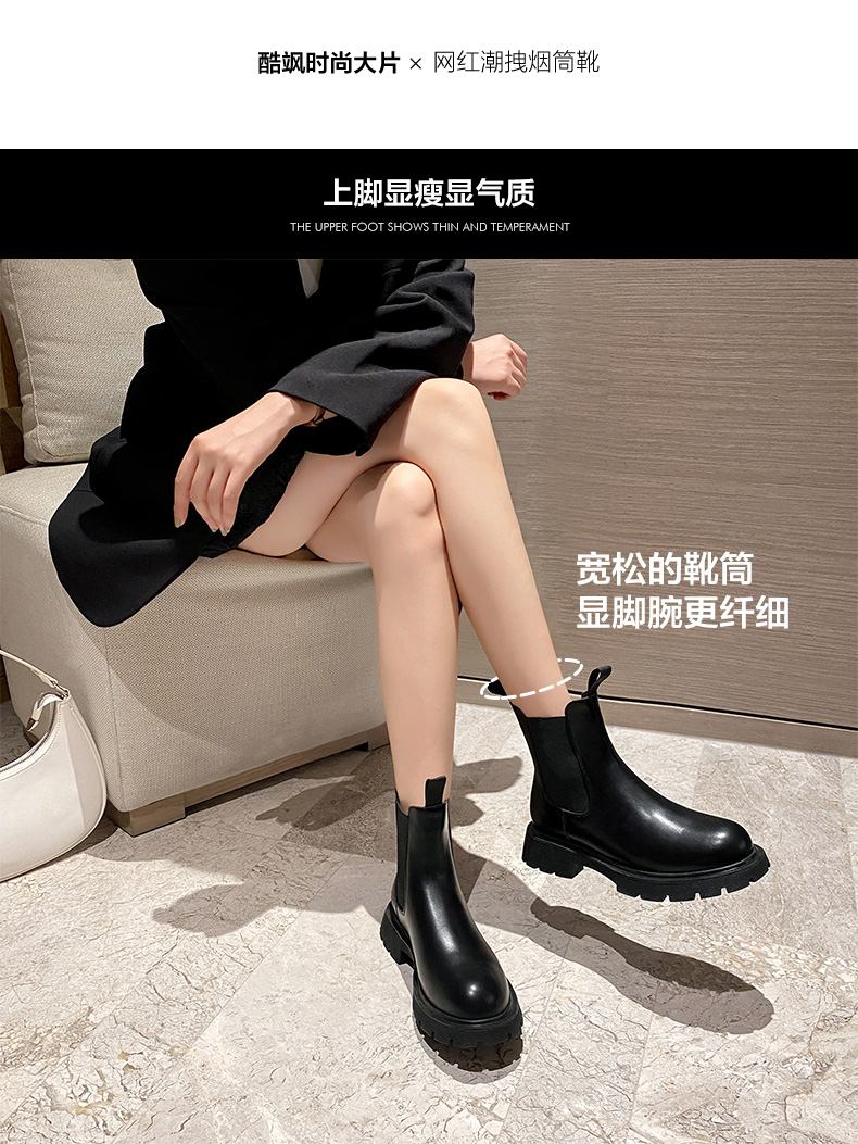 ZHR潮酷马丁靴厚底烟筒靴女加绒英伦风百搭切尔西短靴