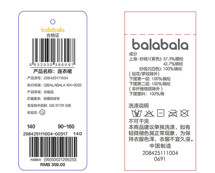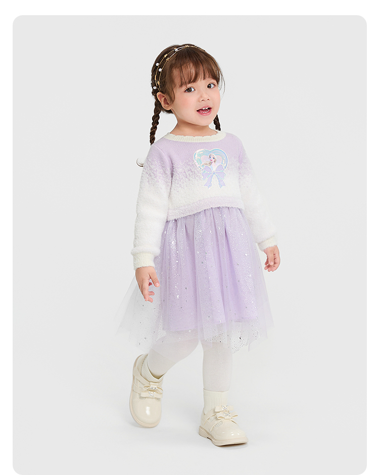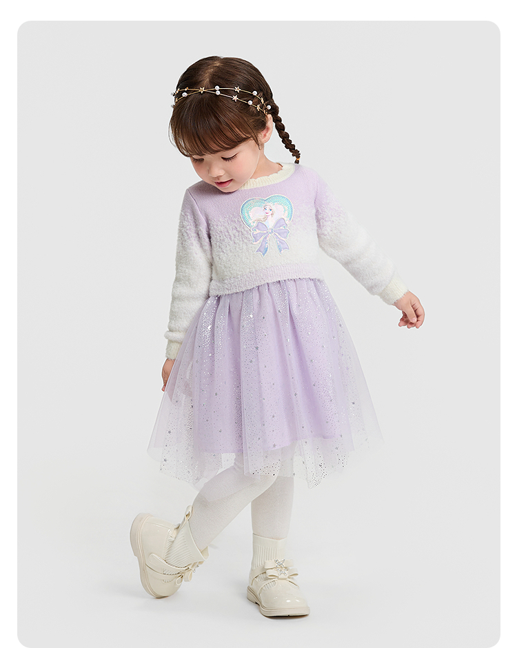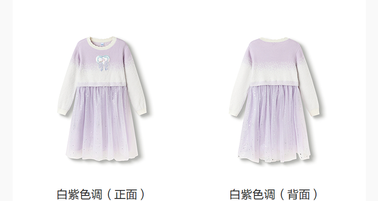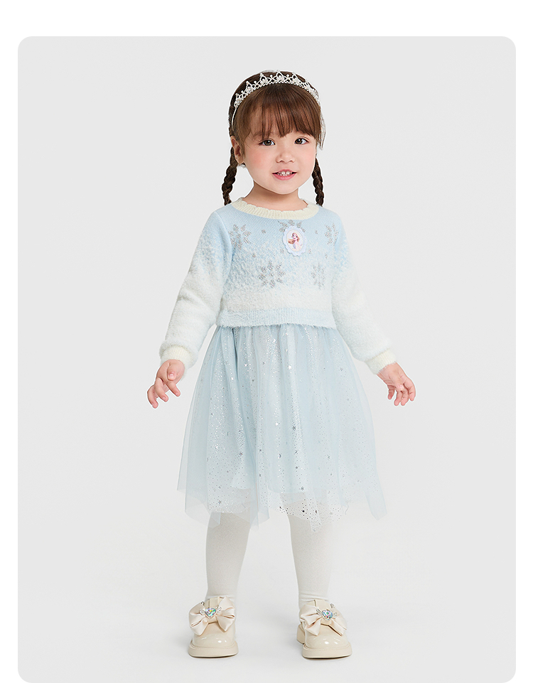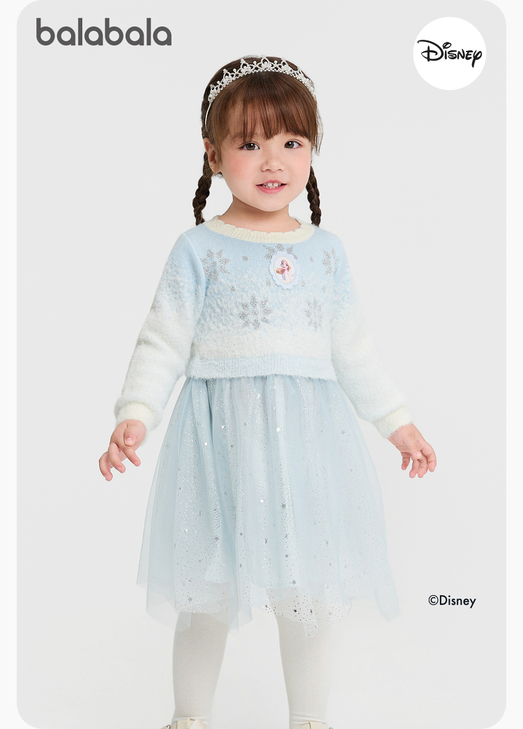 【迪士尼IP】巴拉巴拉balaOne儿童连衣裙女2025冬新款针织网纱裙