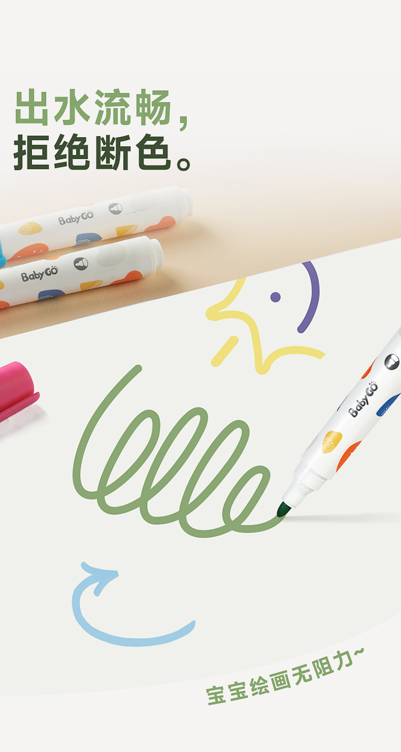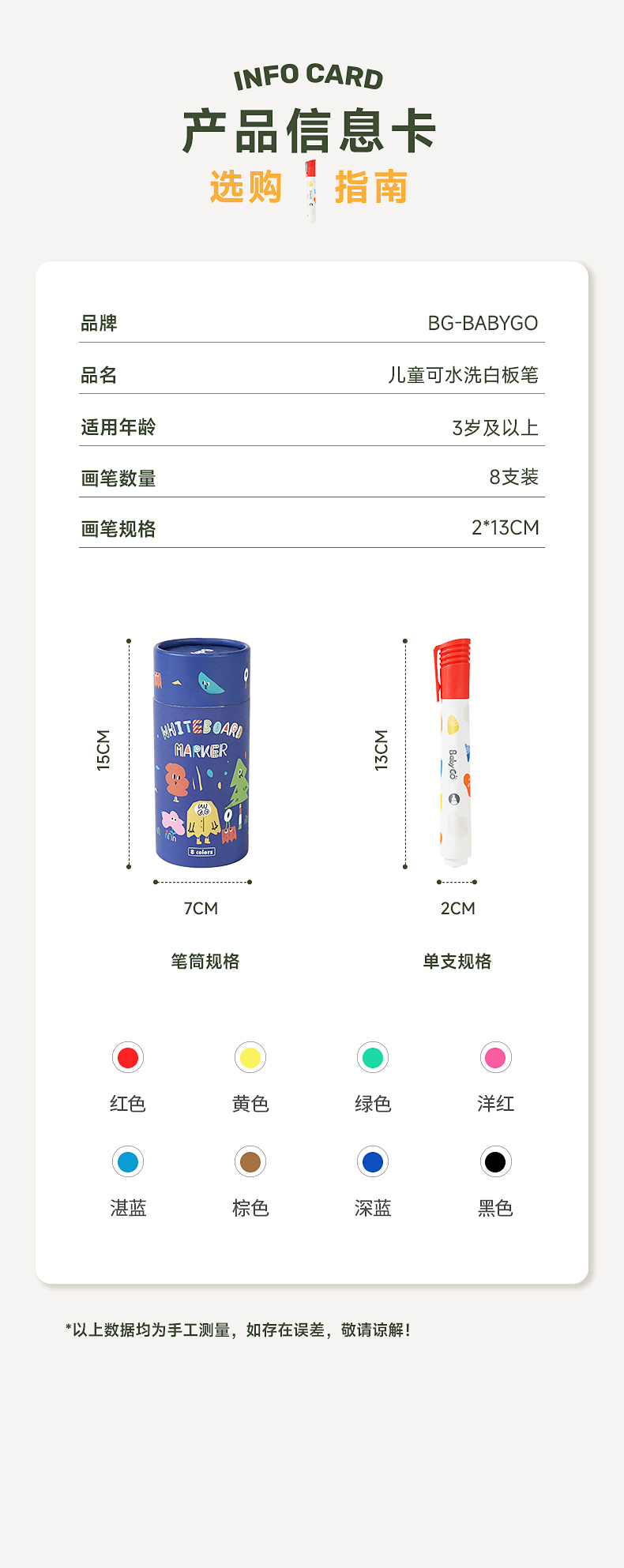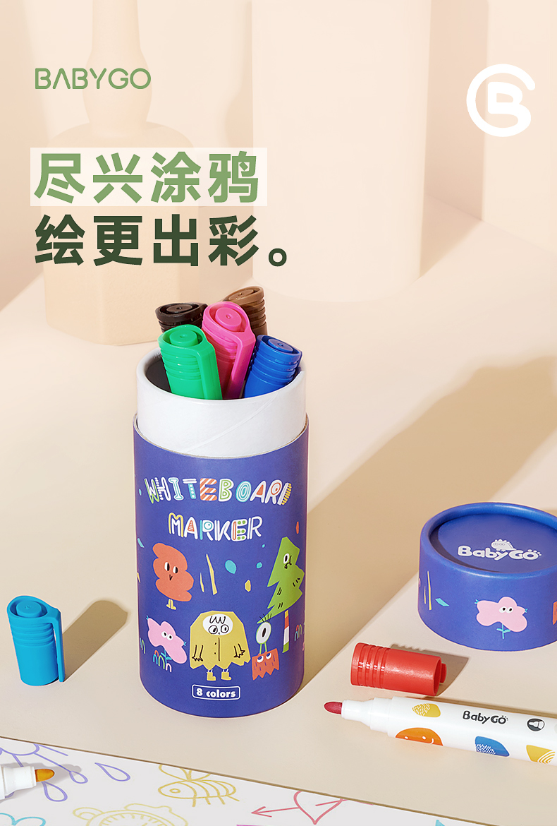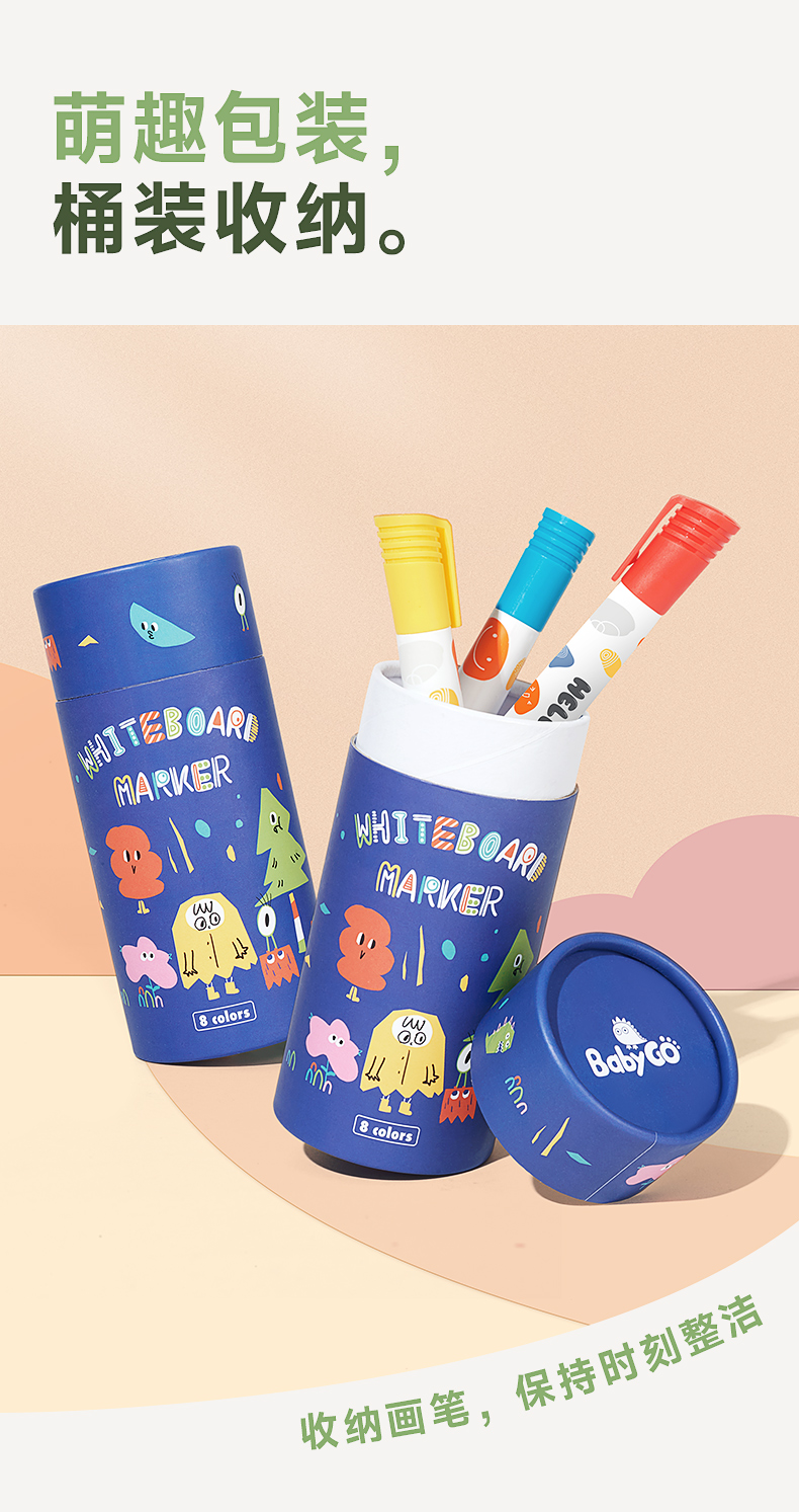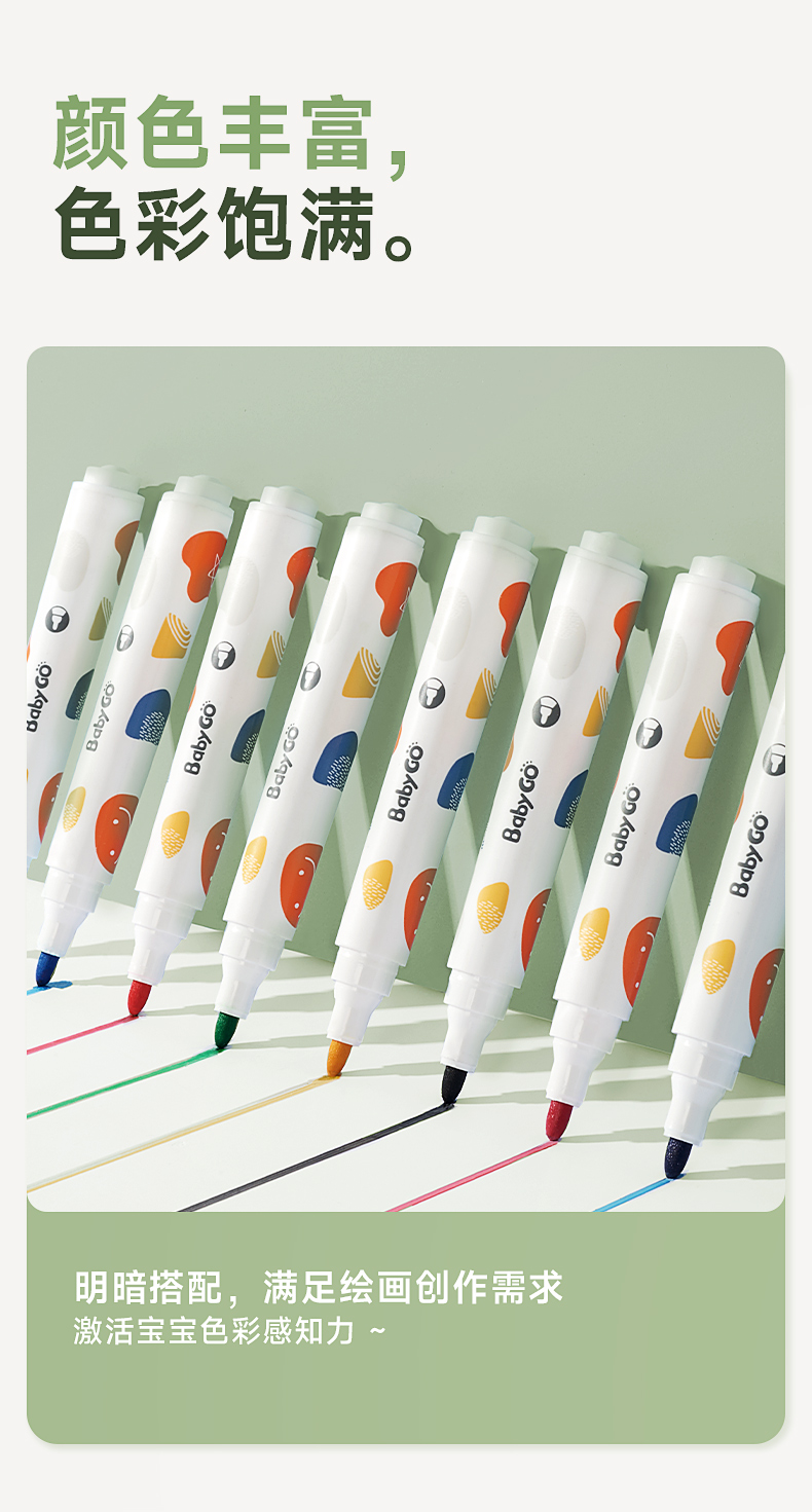 BABYGO儿童白板笔8色可水洗可擦水彩笔套装幼儿环保安全涂鸦画笔