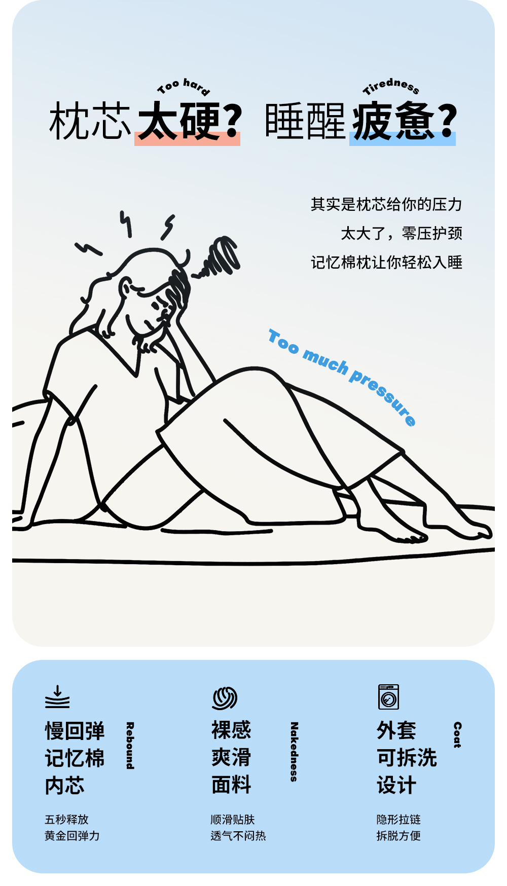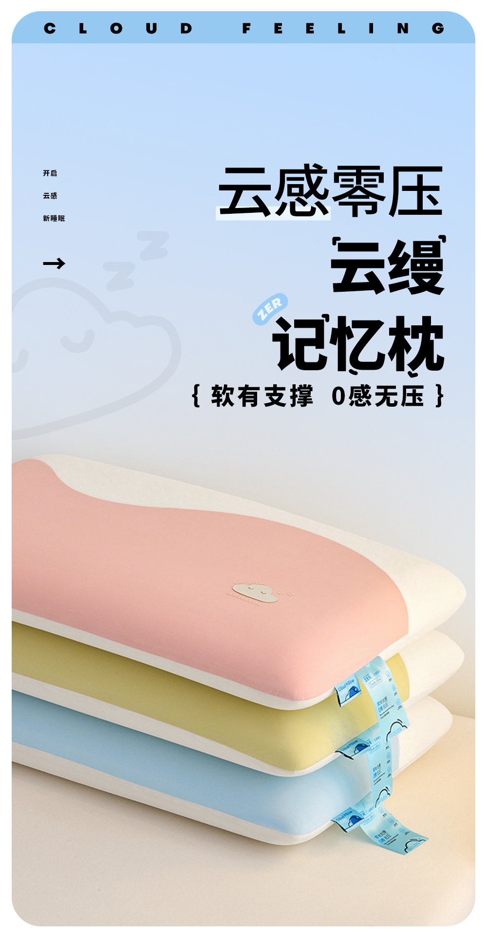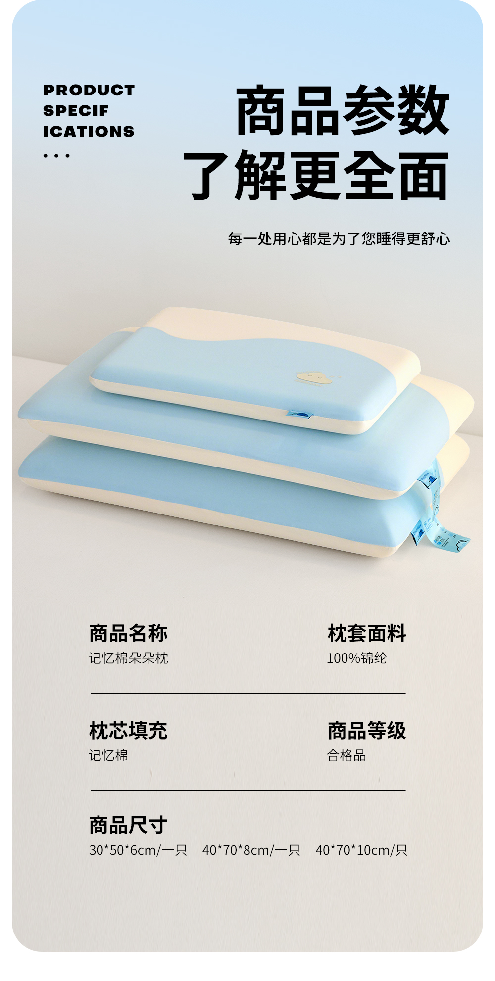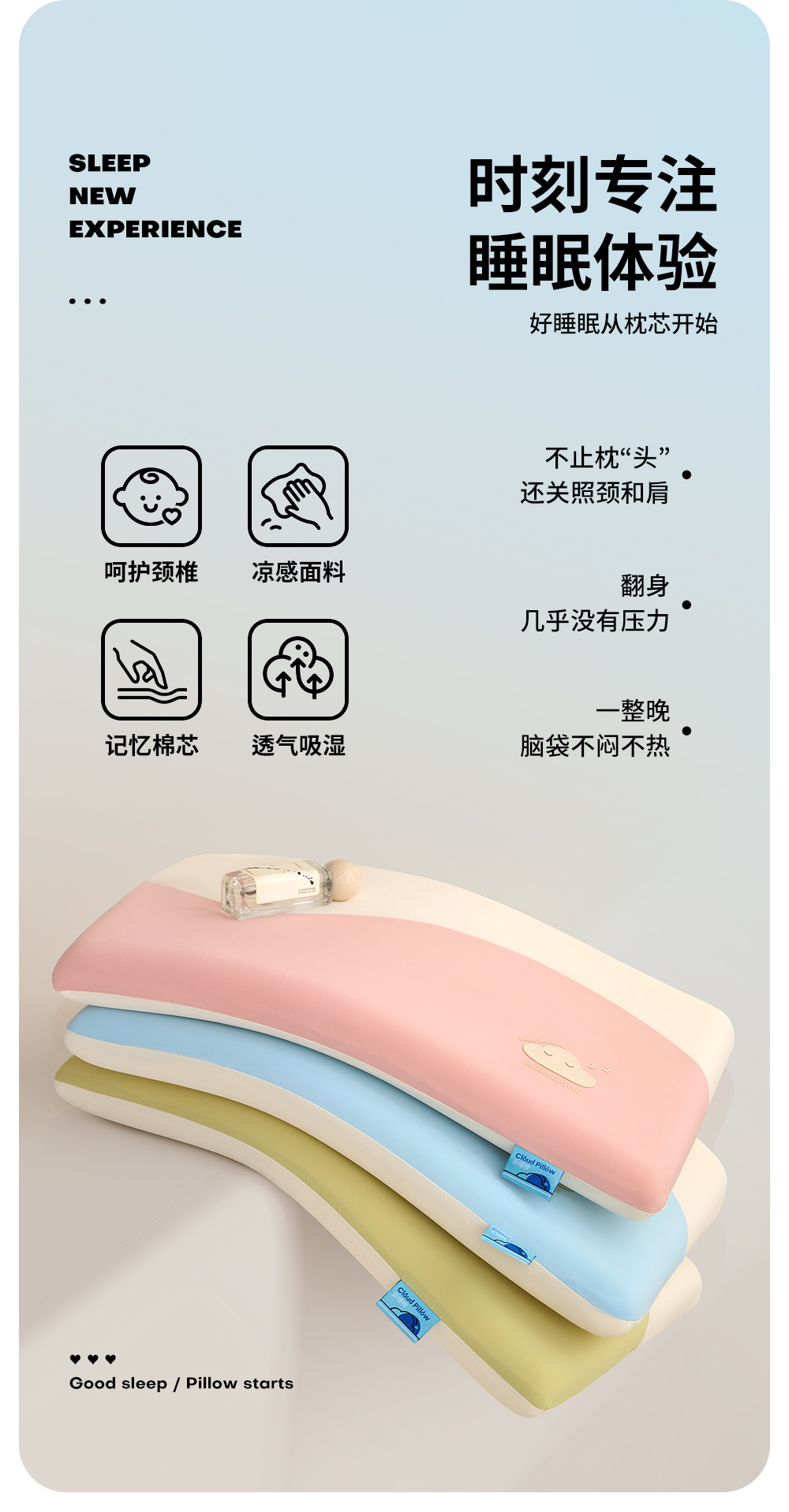 【品牌直发】加倍生活 儿童成人深睡眠慢回弹锦氨凉感枕 3色可选 冷感春夏夏季记忆枕枕头枕芯