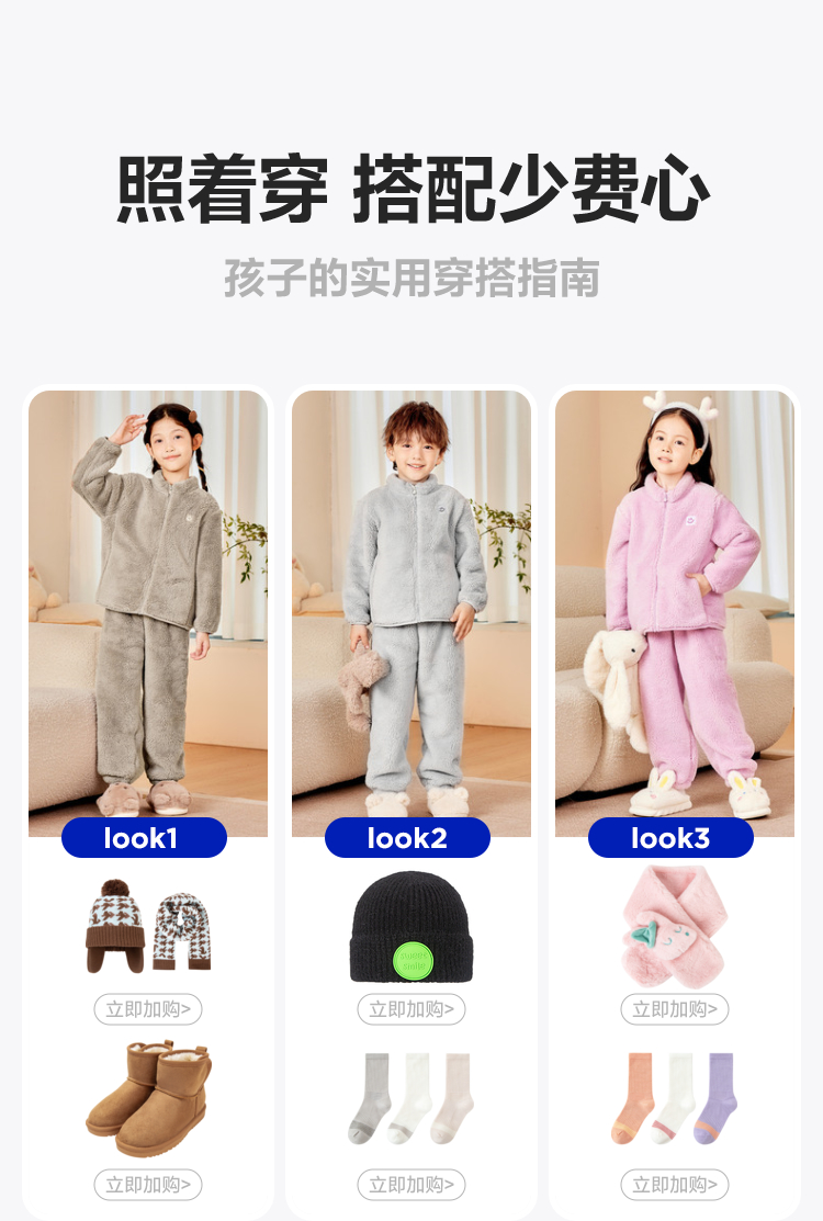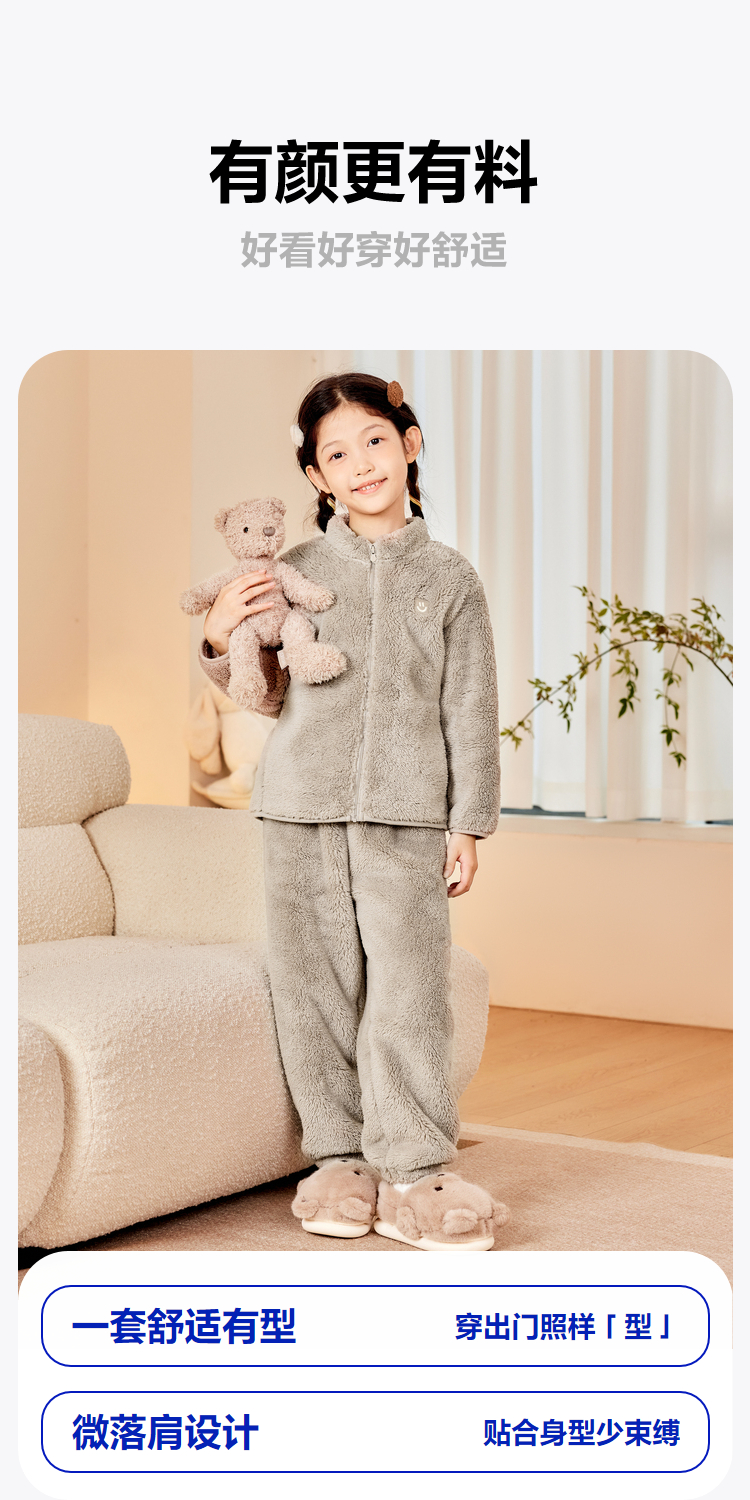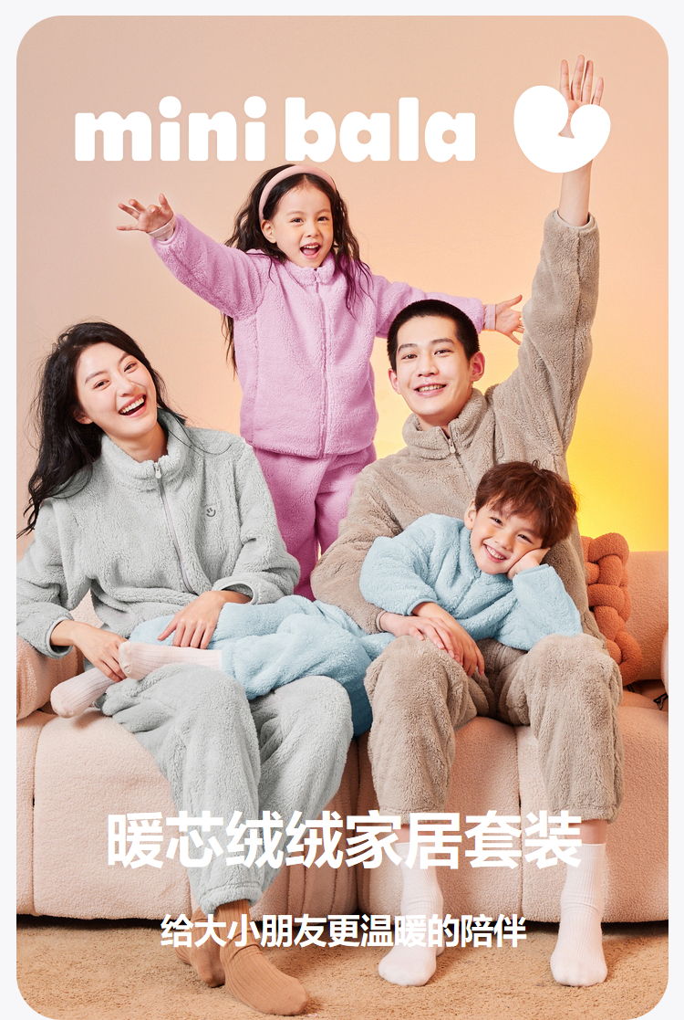【暖芯绒】迷你巴拉冬季新儿童双面绒家居服宝宝保暖厚款睡衣