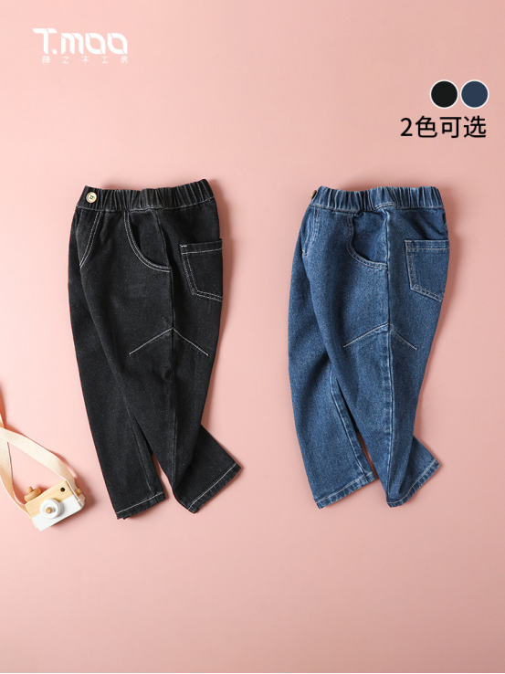 T.MOO藤之木工房彩色出行牛仔劈叉裤