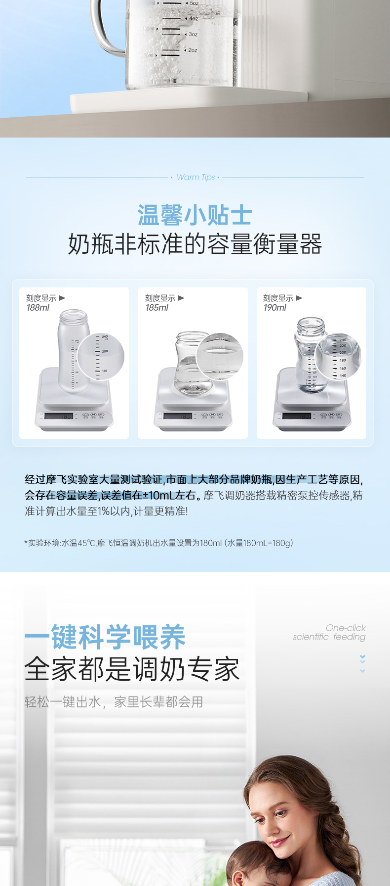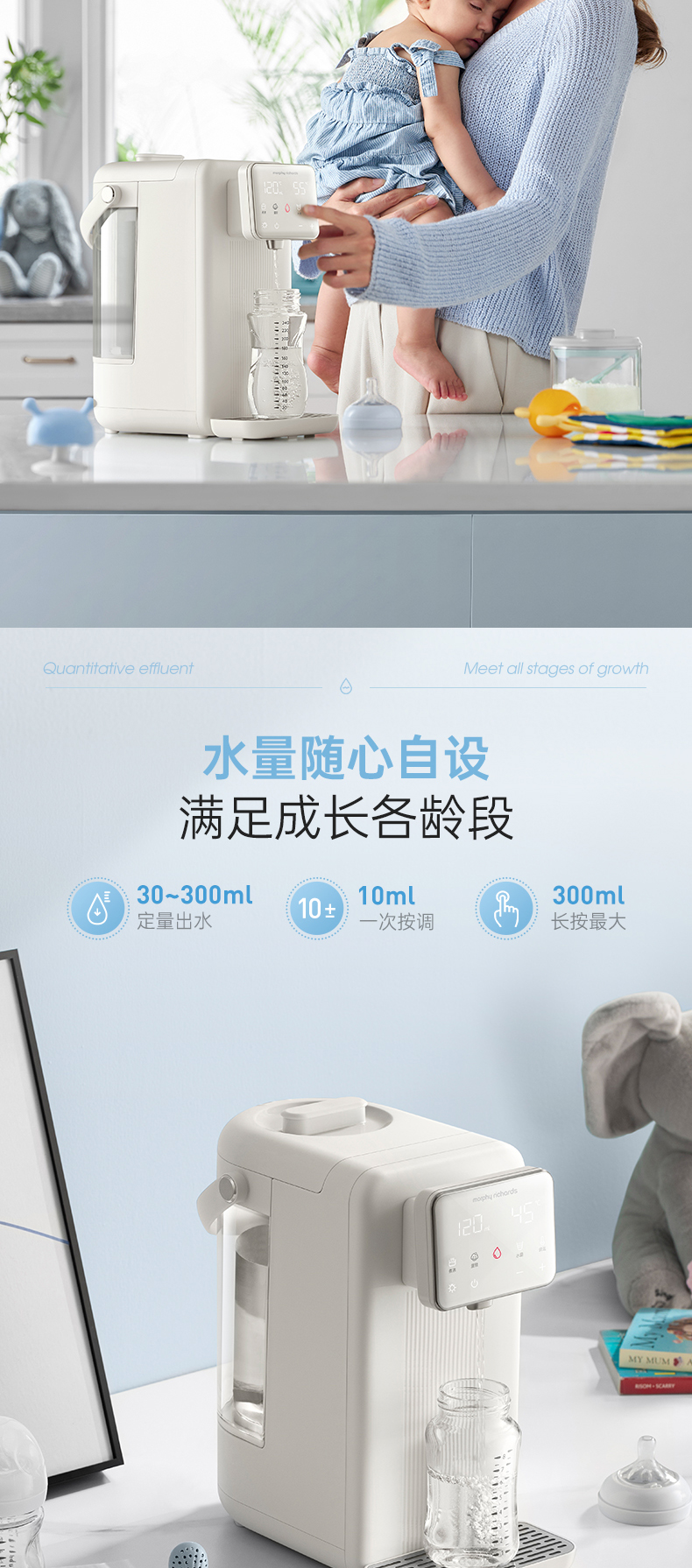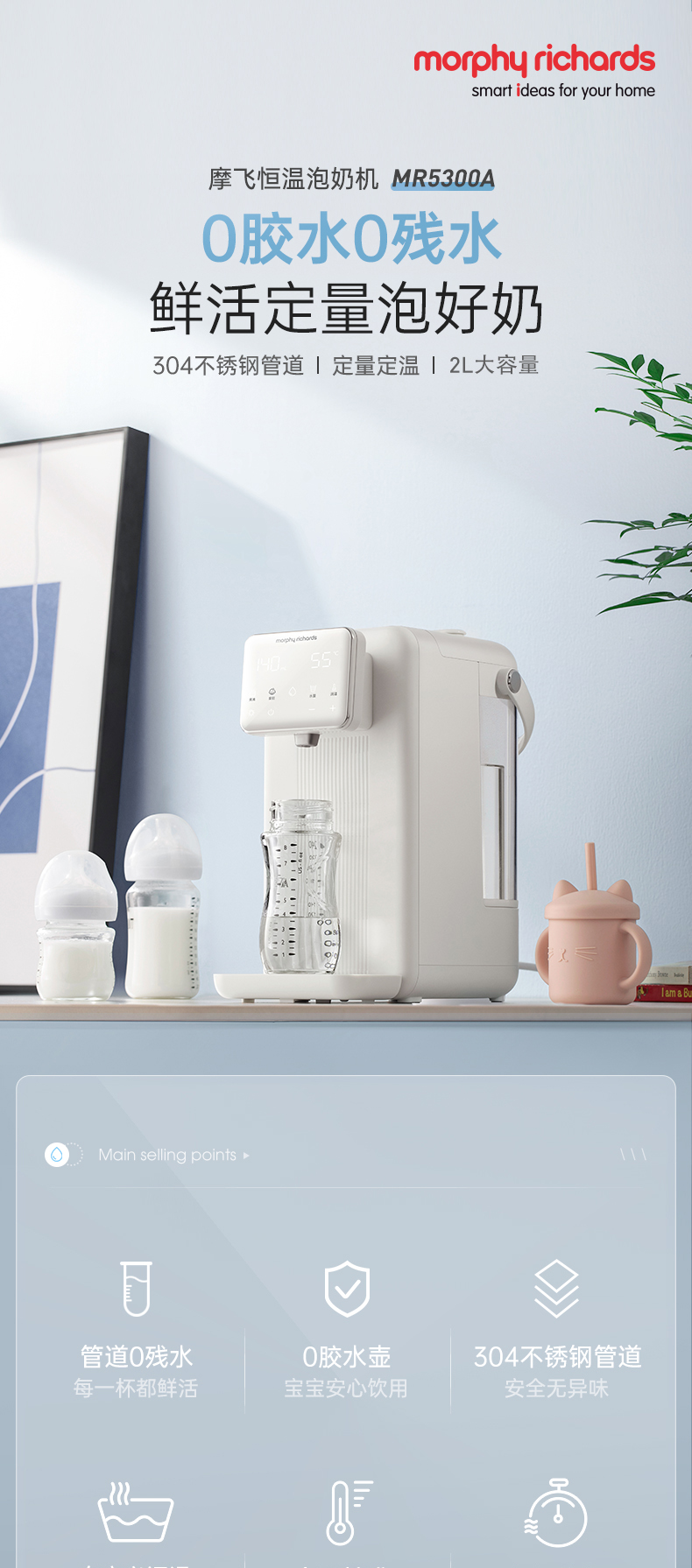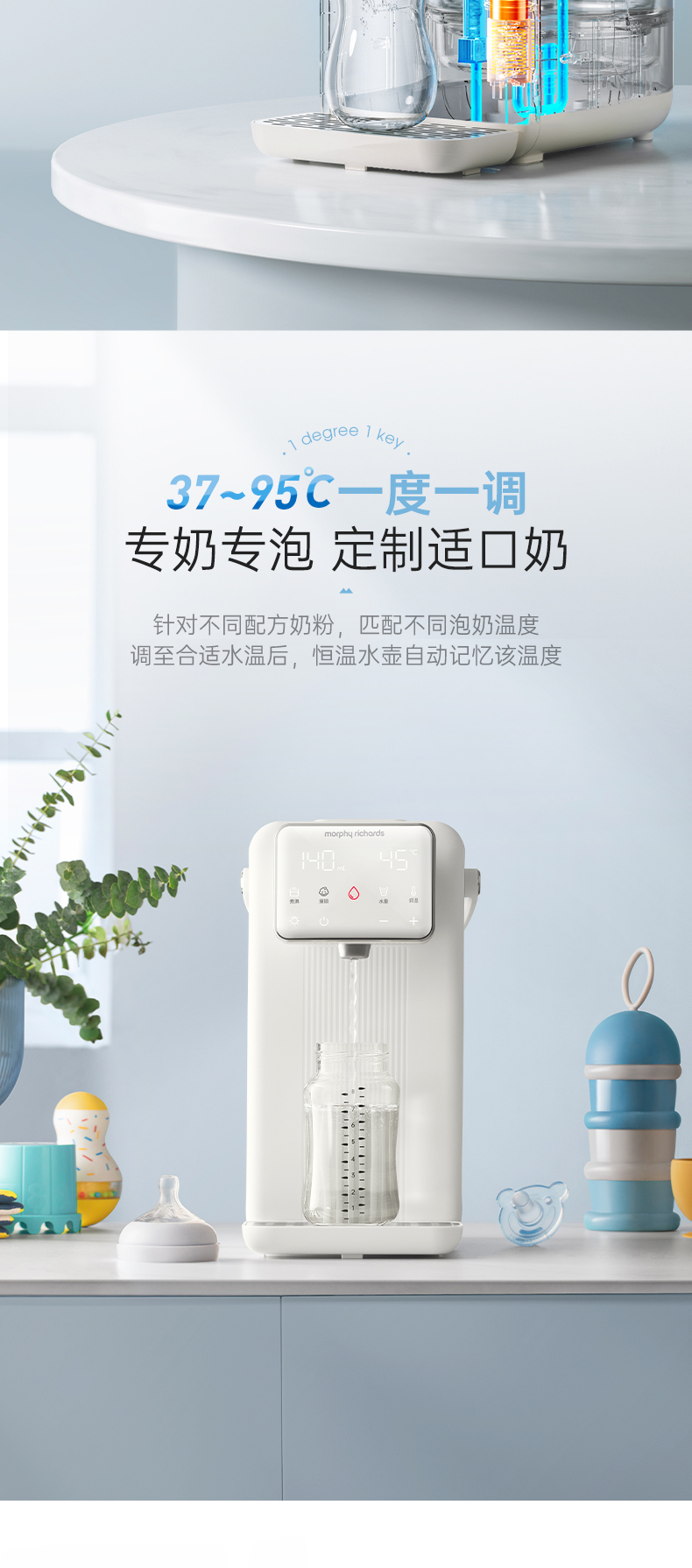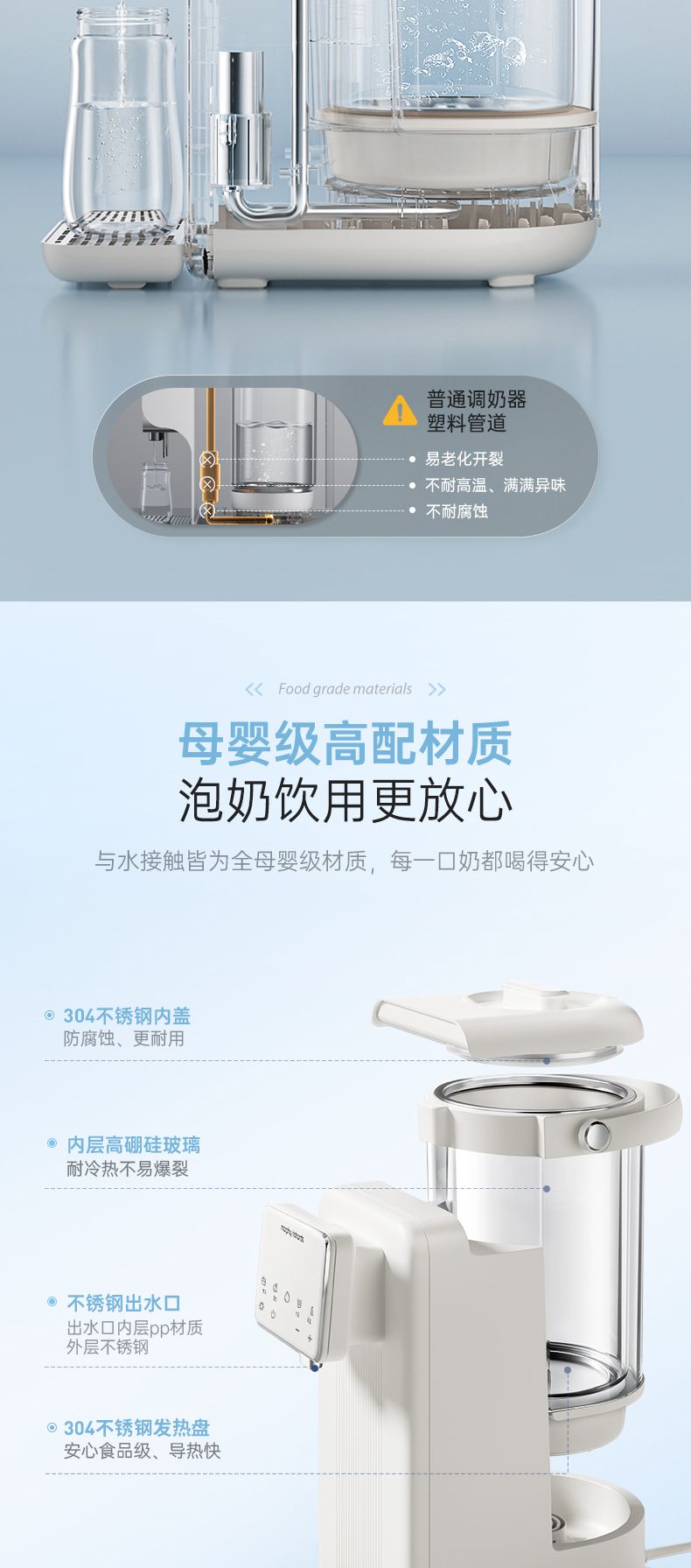 摩飞双层高硼玻璃恒温调奶器 多段控温一键除氯定量出水泡奶管道0残水恒温水壶MR5300A 2L大容量泡奶机