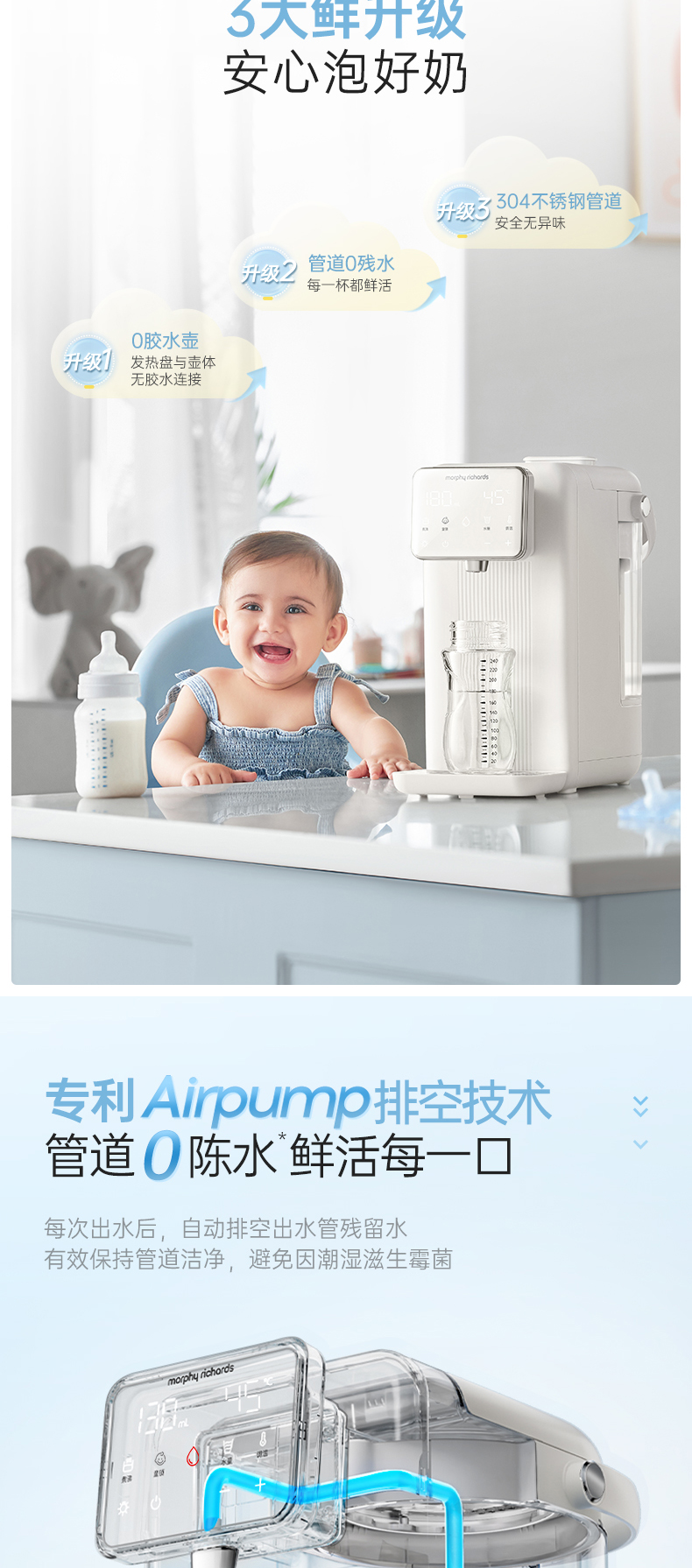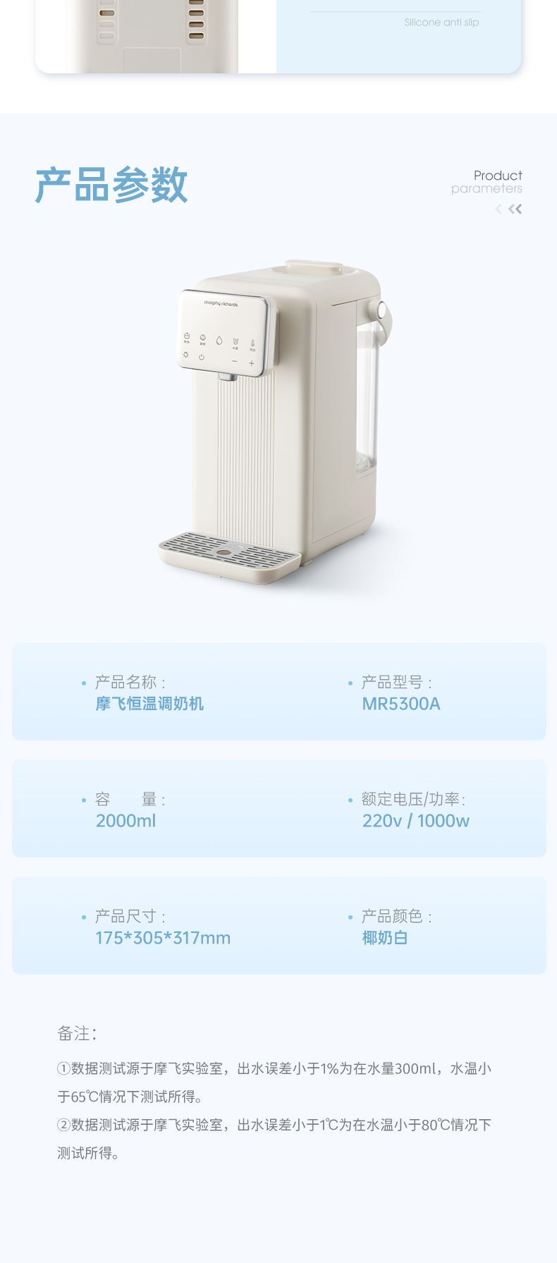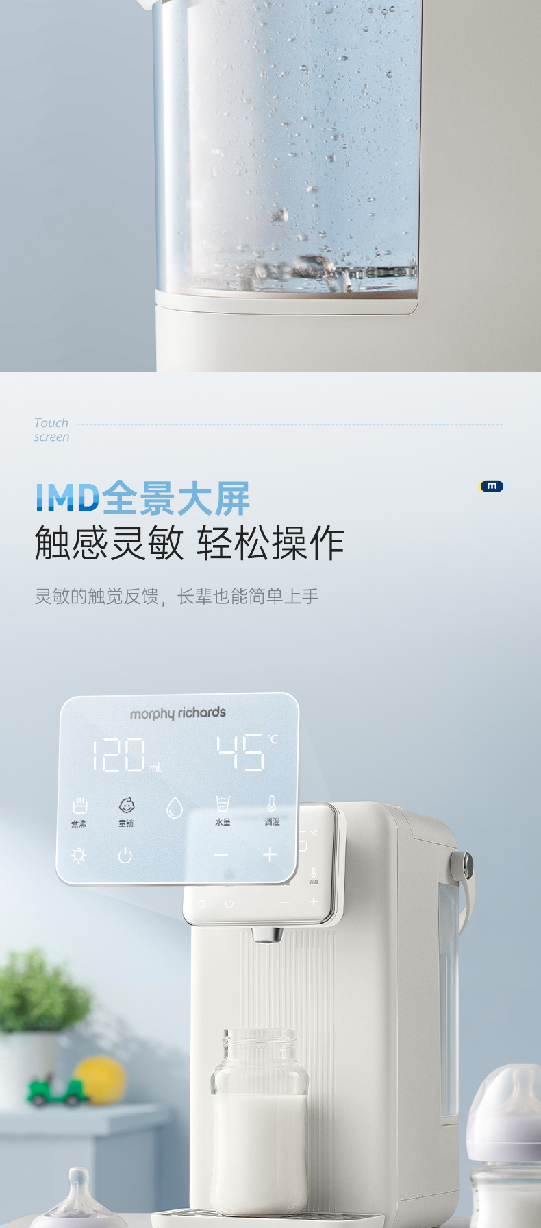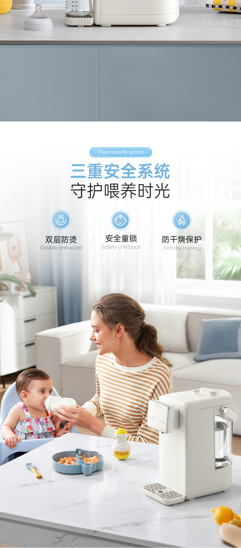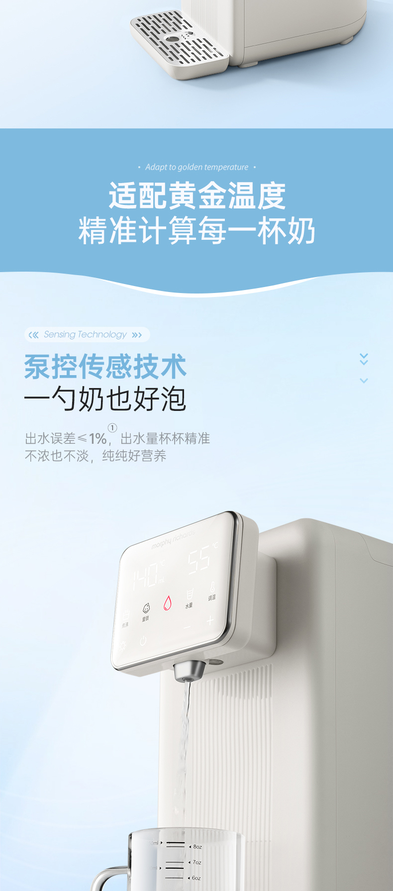 摩飞双层高硼玻璃恒温调奶器 多段控温一键除氯定量出水泡奶管道0残水恒温水壶MR5300A 2L大容量泡奶机
