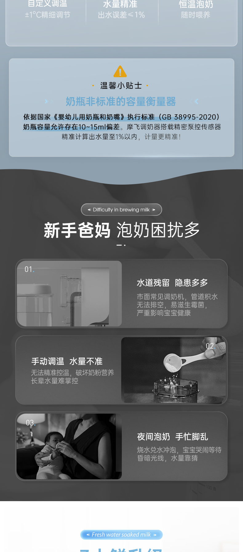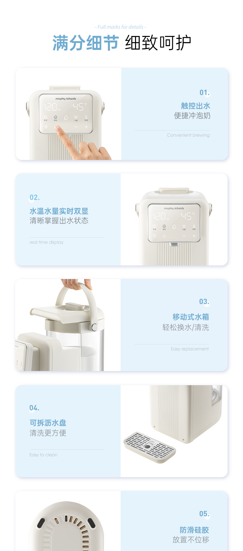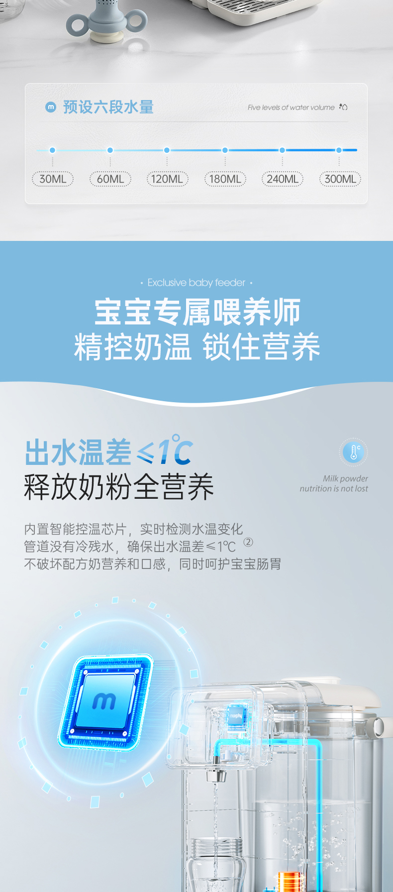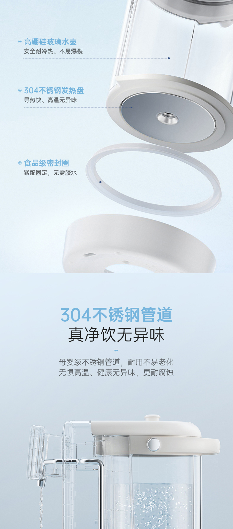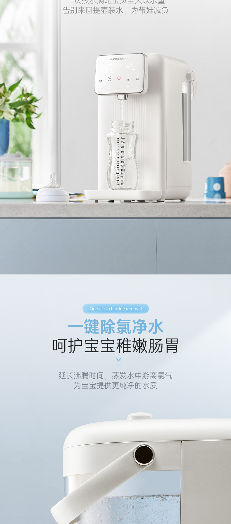 摩飞双层高硼玻璃恒温调奶器 多段控温一键除氯定量出水泡奶管道0残水恒温水壶MR5300A 2L大容量泡奶机