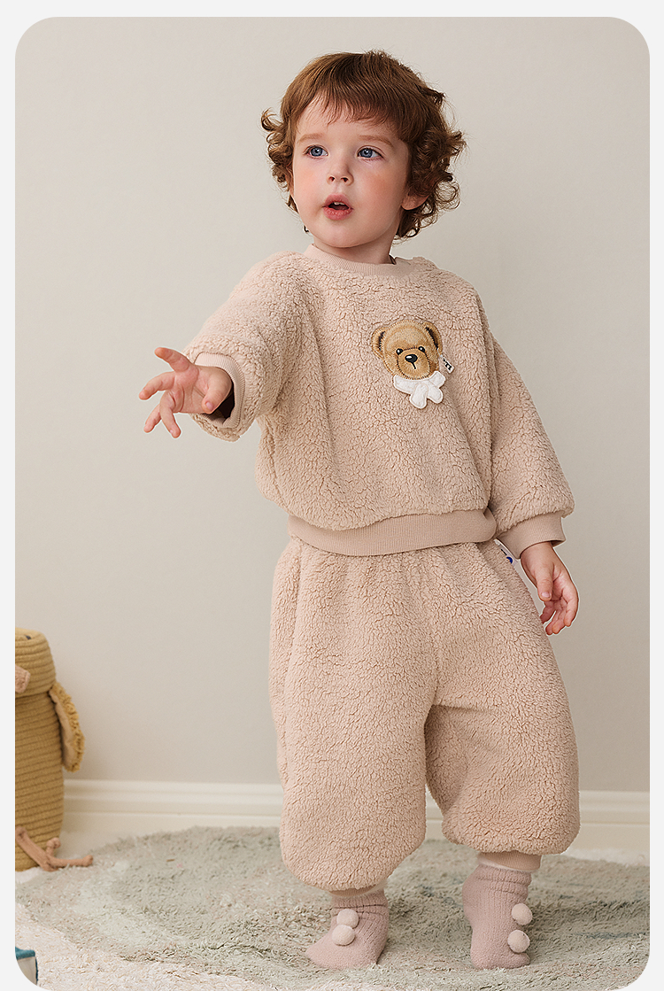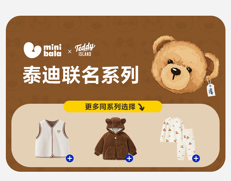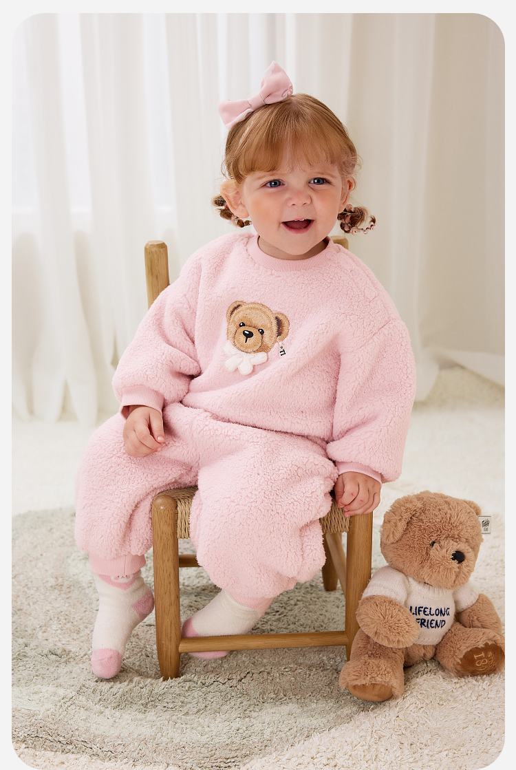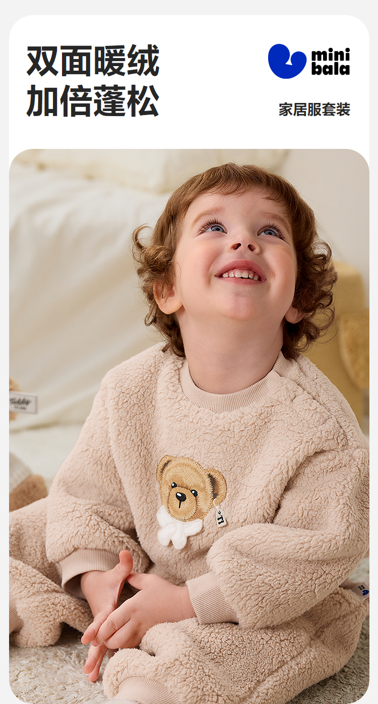【泰迪熊IP联名】迷你巴拉儿童家居服套装宝宝双面绒睡衣秋冬款