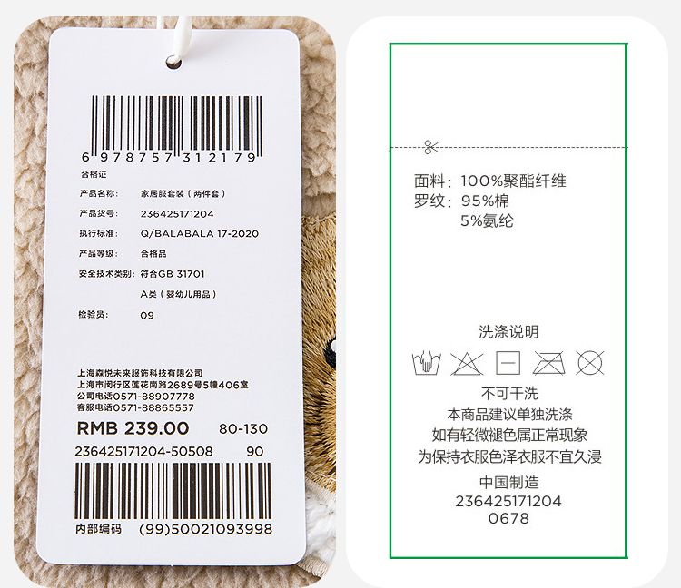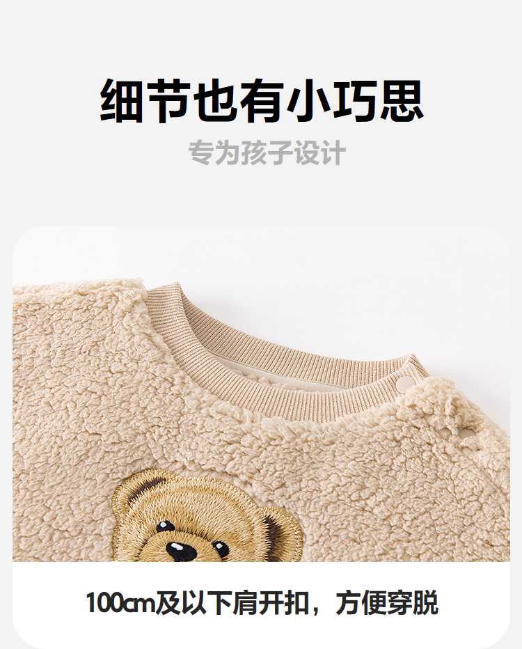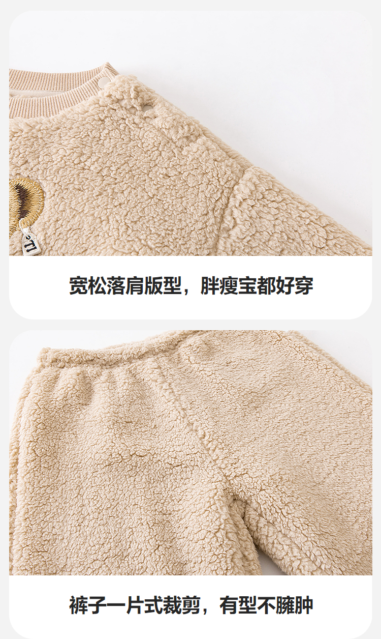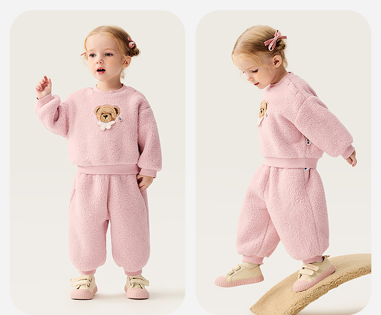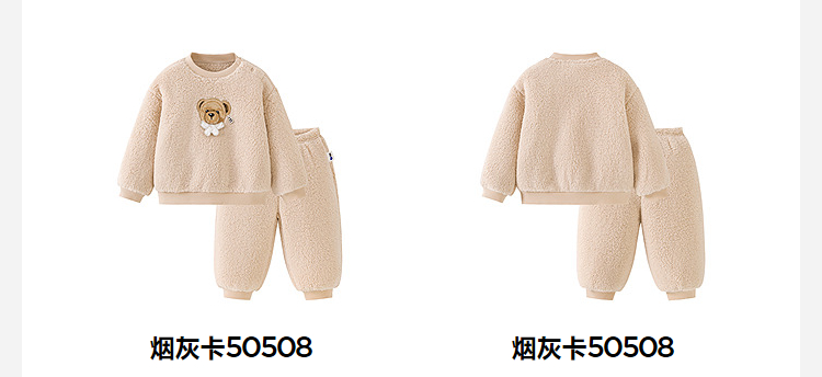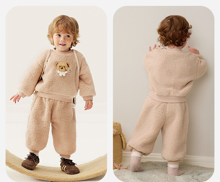 【泰迪熊IP联名】迷你巴拉儿童家居服套装宝宝双面绒睡衣秋冬款