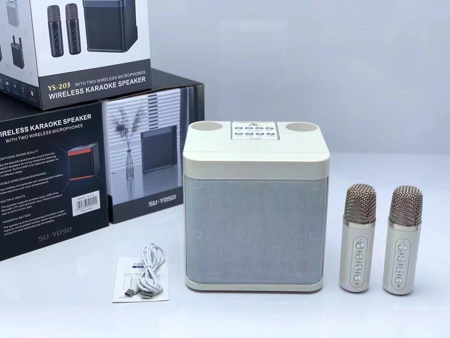 爆款YS-203家庭电视手机KTV套装K歌音响无线蓝牙双麦克风音箱话筒一体