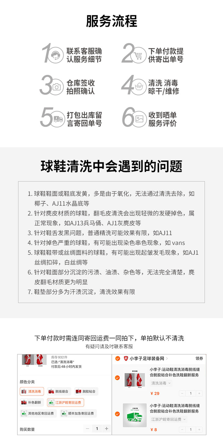 小李子:运动鞋清洗消毒脱线缝合脱胶粘合补色翻新服务