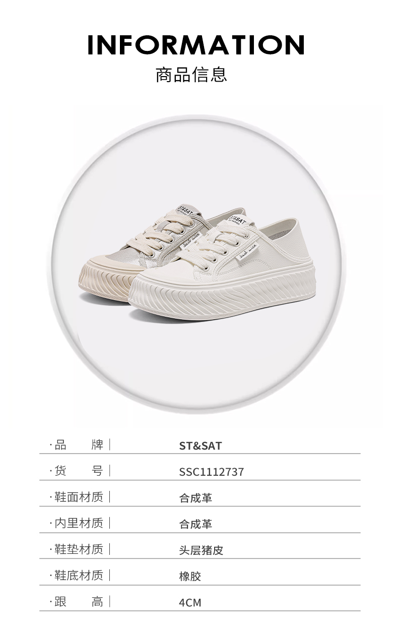 星期六休闲复古百搭厚底小白鞋SSC3112N05