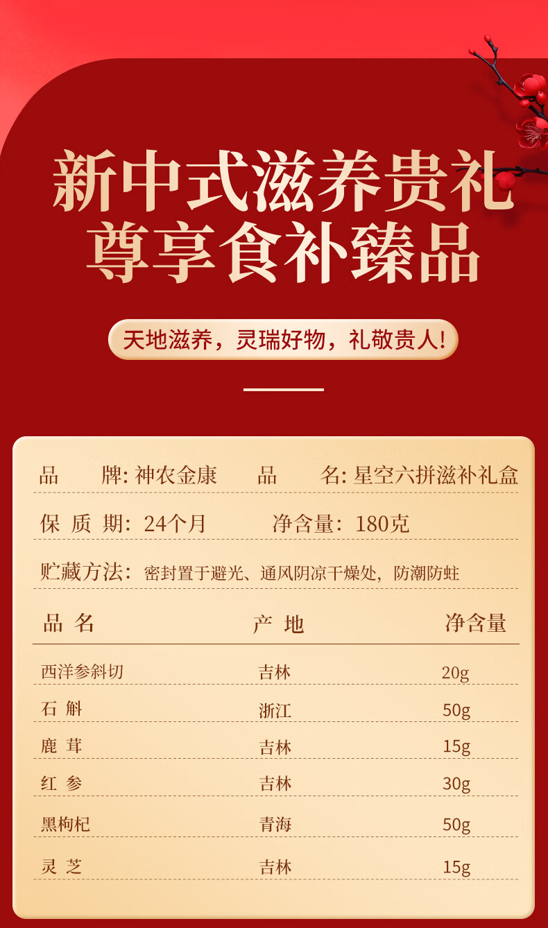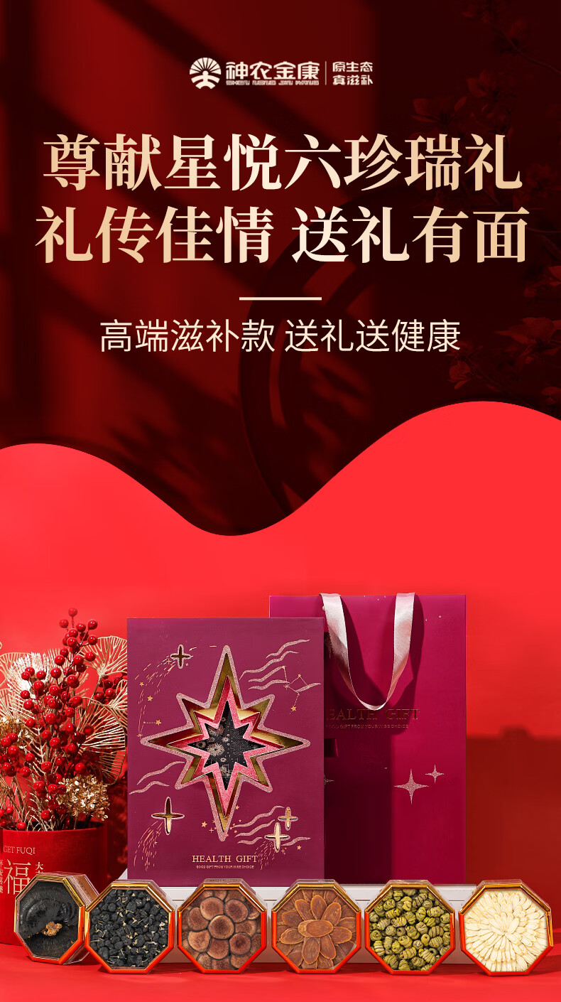 【中秋礼盒】神农金康 西洋参红参鹿茸石斛灵芝黑枸杞礼盒180g六拼礼盒 礼品高端送人礼物 原生态真滋补 喝护家人健康
