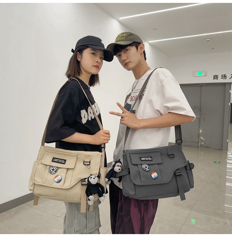 新款斜挎包男士潮牌日系工装挎包 帆布学生邮差包女百搭休闲单肩包 商品图5