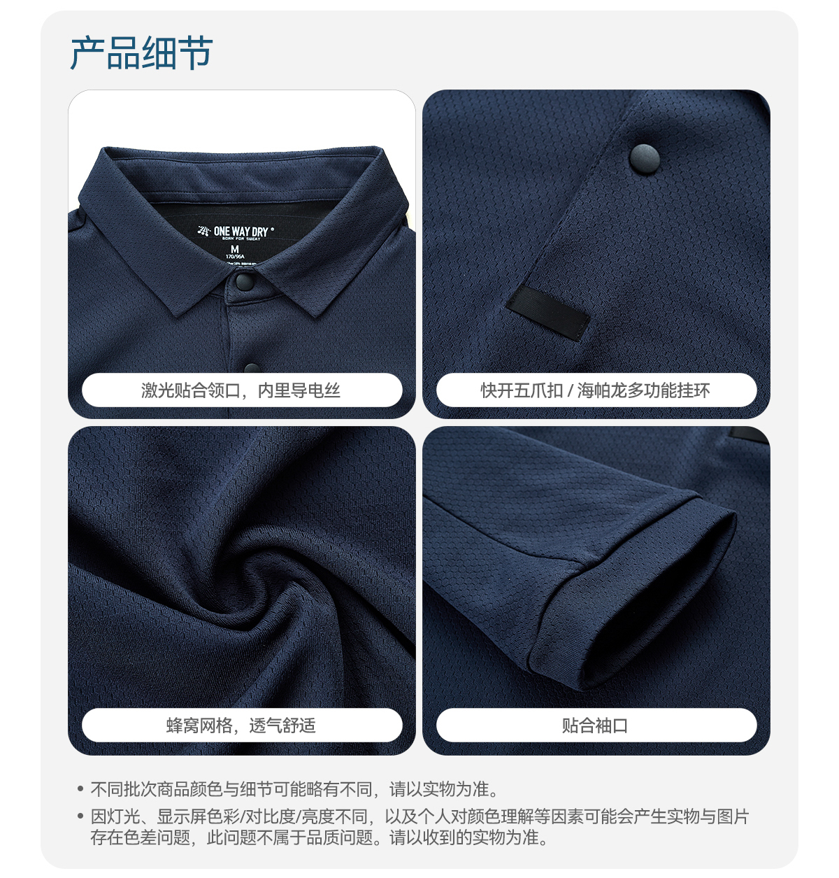 单导秋季新款POLO衫长袖T恤男士速干单向排汗透气遮热抗静电上衣