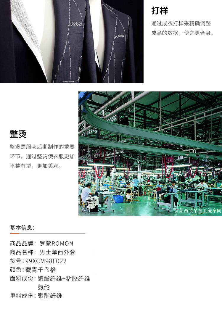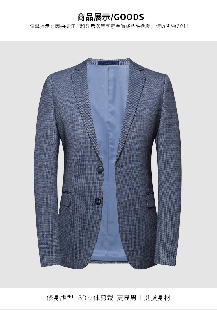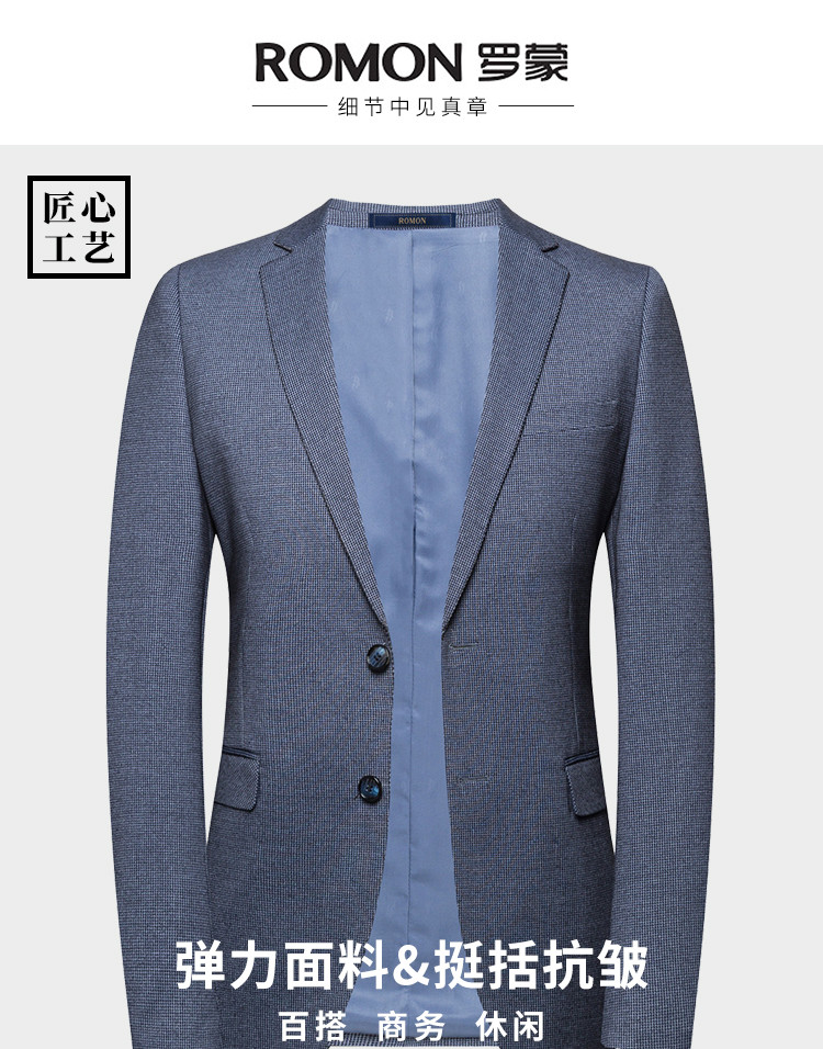 罗蒙 春秋男装 小西装外套 时尚休闲 两粒扣 千鸟格单西服 上衣外套